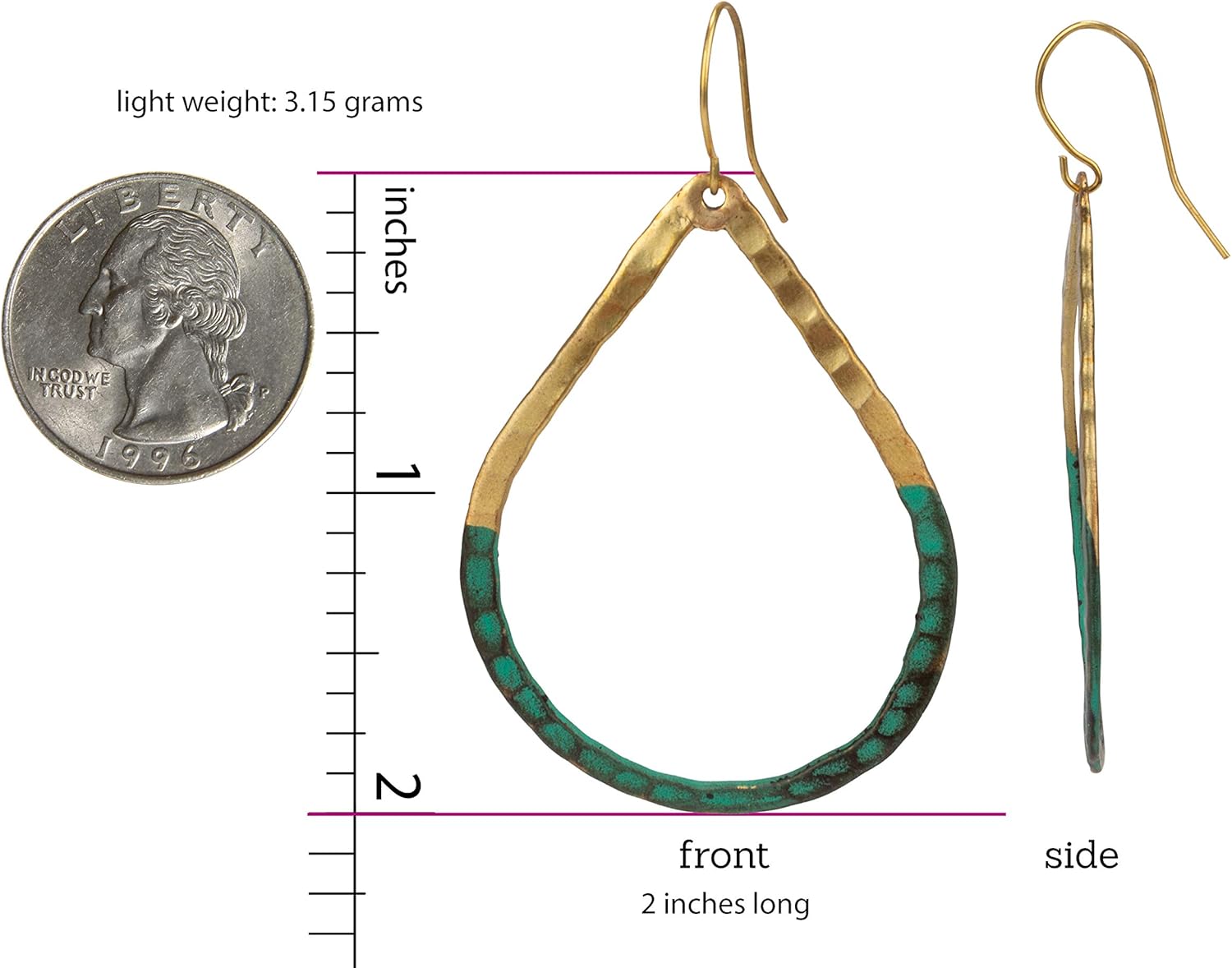 SPUNKYsoul Handmade Boho Open Teardrop Gold Patina Earrings for Women