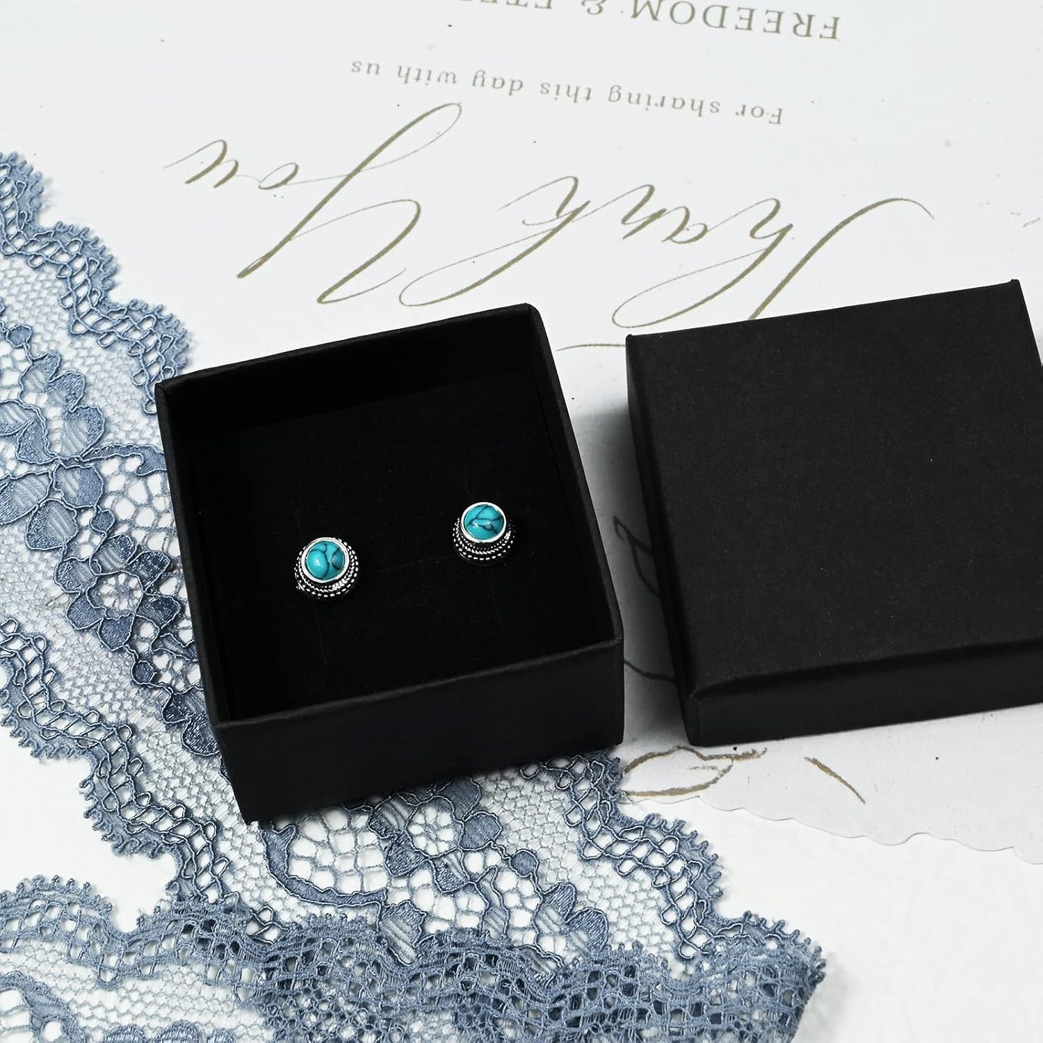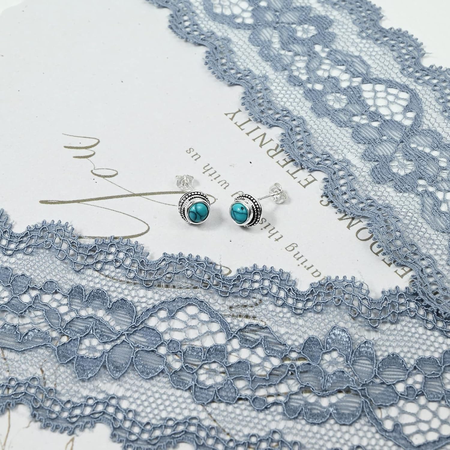 Tibetan Turquoise Earrings 925 Sterling Silver Post Stud Boho Gemstone Hypoallergenic Handmade Earrings for Women Trendy Fashion