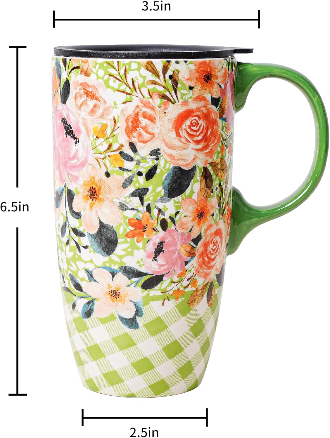 Topadorn Coffee Ceramic Mug Porcelain Latte Tea Cup With Lid in Present Box 17oz,Green & Yellow Flowers