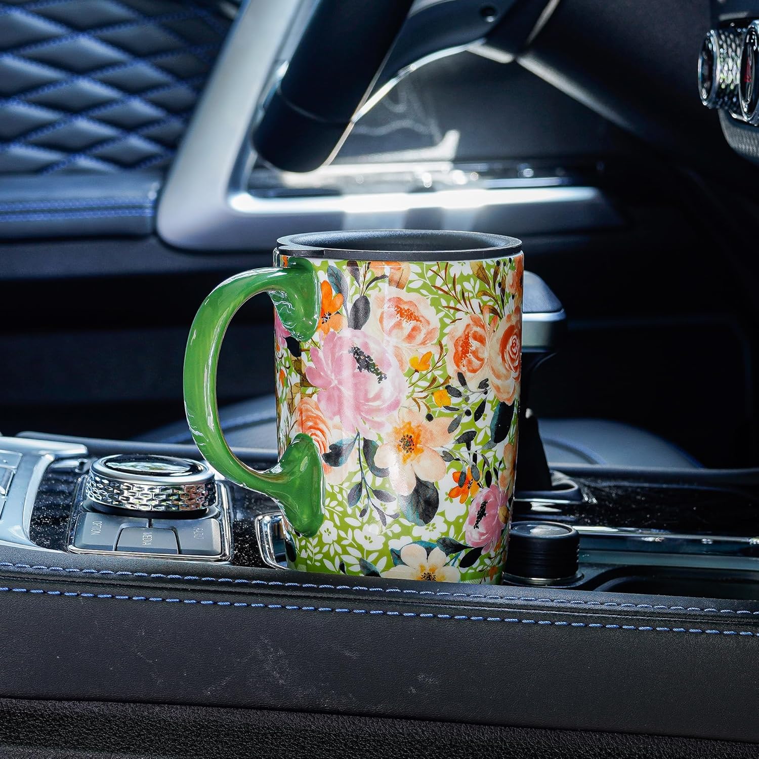 Ceramic travel coffee mug with lid the perfect beverage holder for any occasion. Fits well in car cup holder. Enjoy your morning coffee or sip your hot tea at home with this hot travel mug or use as an iced coffee travel cup on the deck.