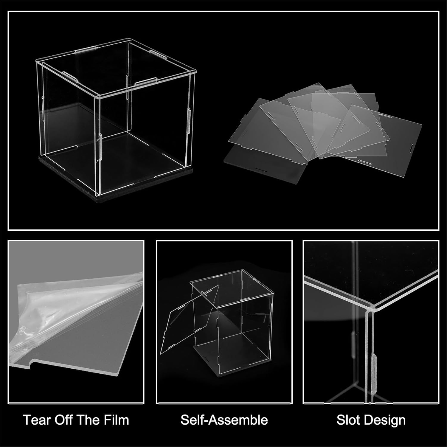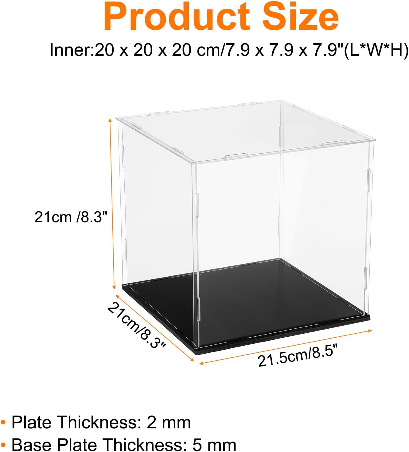 Dimensions: Outer Size: 21.5 x 21 x 21 cm/8.5 x 8.3 x 8.3 inch (L*W*H); Inner Size: 20 x 20 x 20 cm/7.9 x 7.9 x 7.9 inch (L*W*H); Base Plate Thickness: 5 mm. Providing ample space for collectibles and for a countertop display.