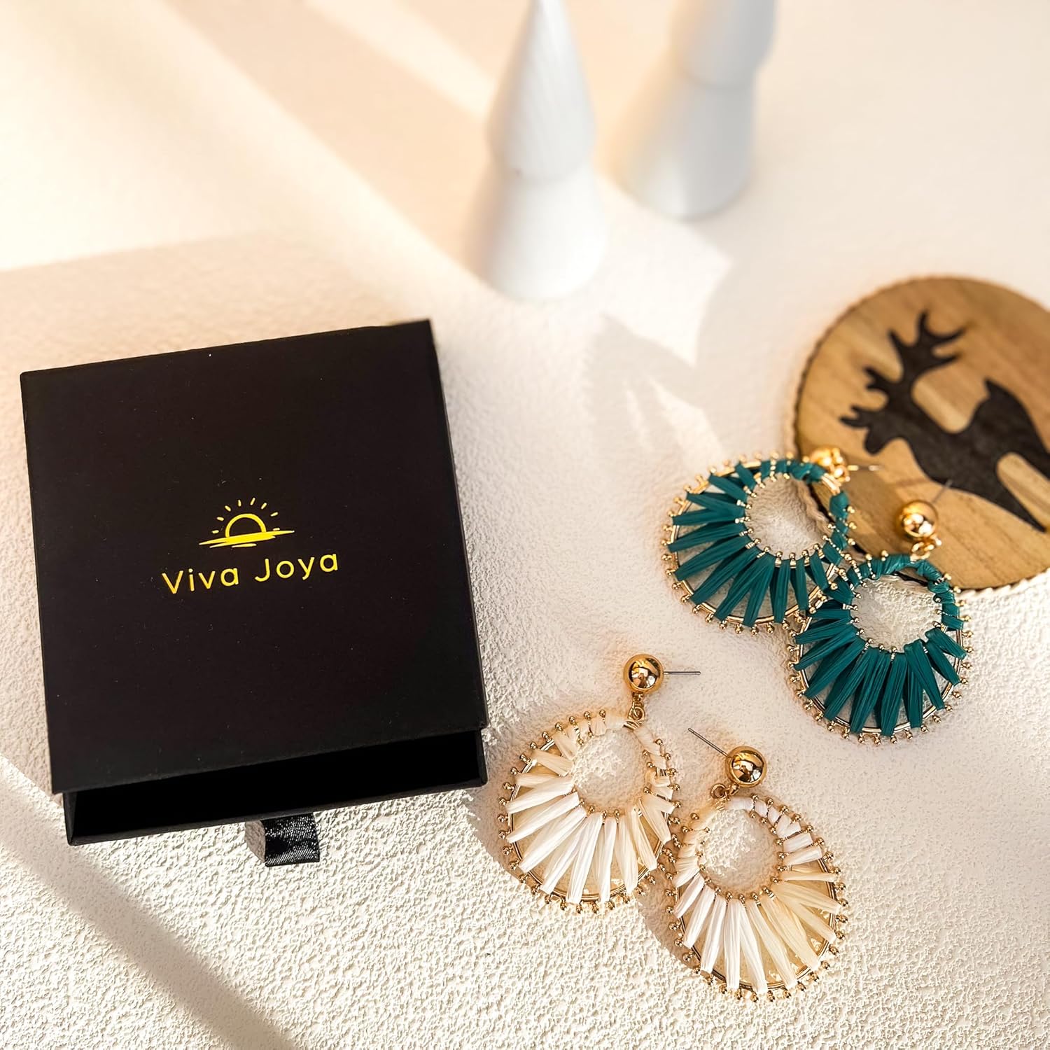 Viva Joya Boho Raffia Teardrop Earrings for Women, Large Statement Drop Dangle Earrings for Prom, Aesthetic Fashion Trendy Jewelry, Handmade Woven Beach Bridal Shower Earrings