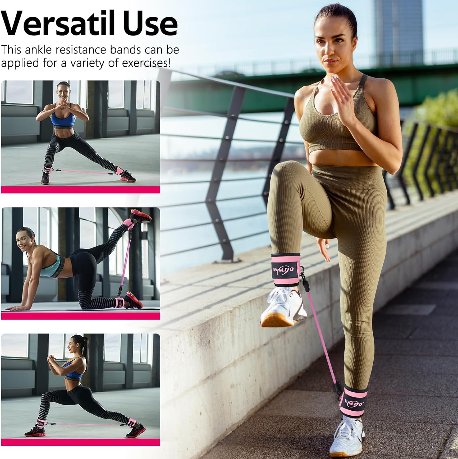WALITO Ankle Resistance Bands with Cuffs, Exercise Bands for Legs and Butt, Booty Workout Equipment for Kickbacks and Hip Fitness Training