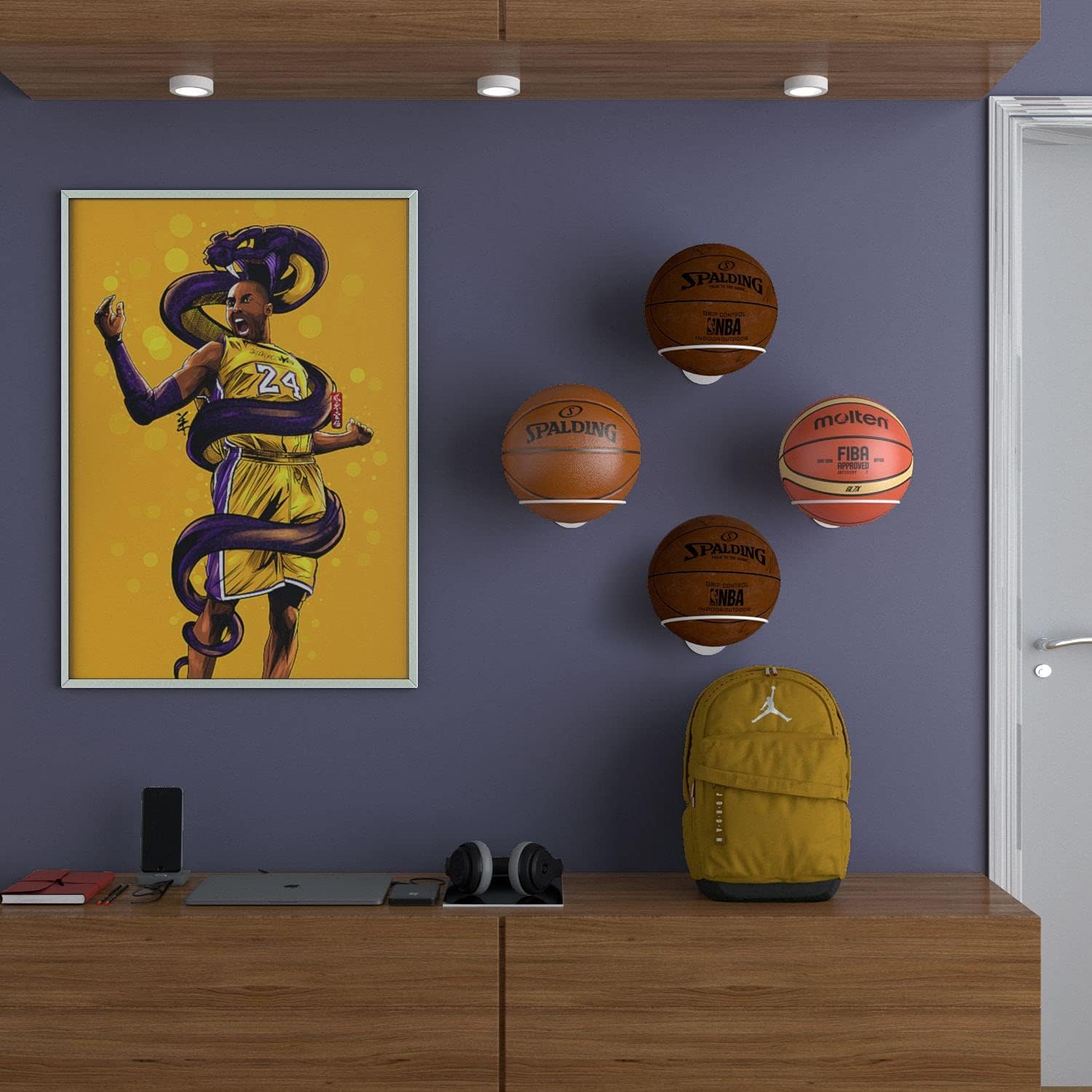 Stylish Design: Easily eliminate unnecessary clutter and replace it with our sleek and functional ball display rack. Simply mount Sporta white basketball holder set of 4 and display your favorite team’s balls or autographed ball collection to level up your sports-themed room decor