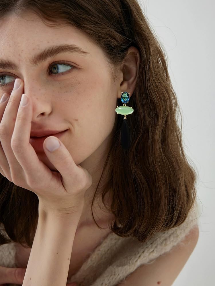 Yomisa Boho Dangle Earrings for Women Gold Silver,Statement Earrings Amethyst Jade Pearl Drop Dangle Earrings for Women Trendy Jewelry Gifts,Lightweight Western Handmade Natural Stones Drop Earrings