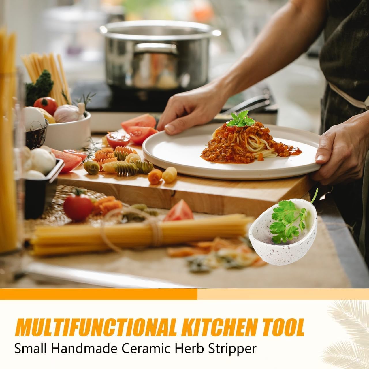 Ergonomic Pottery Design for Comfort: Experience the unique feel of Pottery! Our Herb Stripper boasts a contoured ceramic base that fits naturally in your palm, while the non-slip silicone outer grip ensures stability even with wet hands. Designed by home cooks, for home cooks.