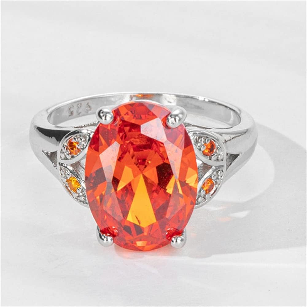 925 Sterling Silver Large Carat Oval Cut Twilight Orange Mystic Quartz Orange Gemstone Ring Cubic Zirconia Rings Eternity Engagement Wedding Band Ring for Women HM445