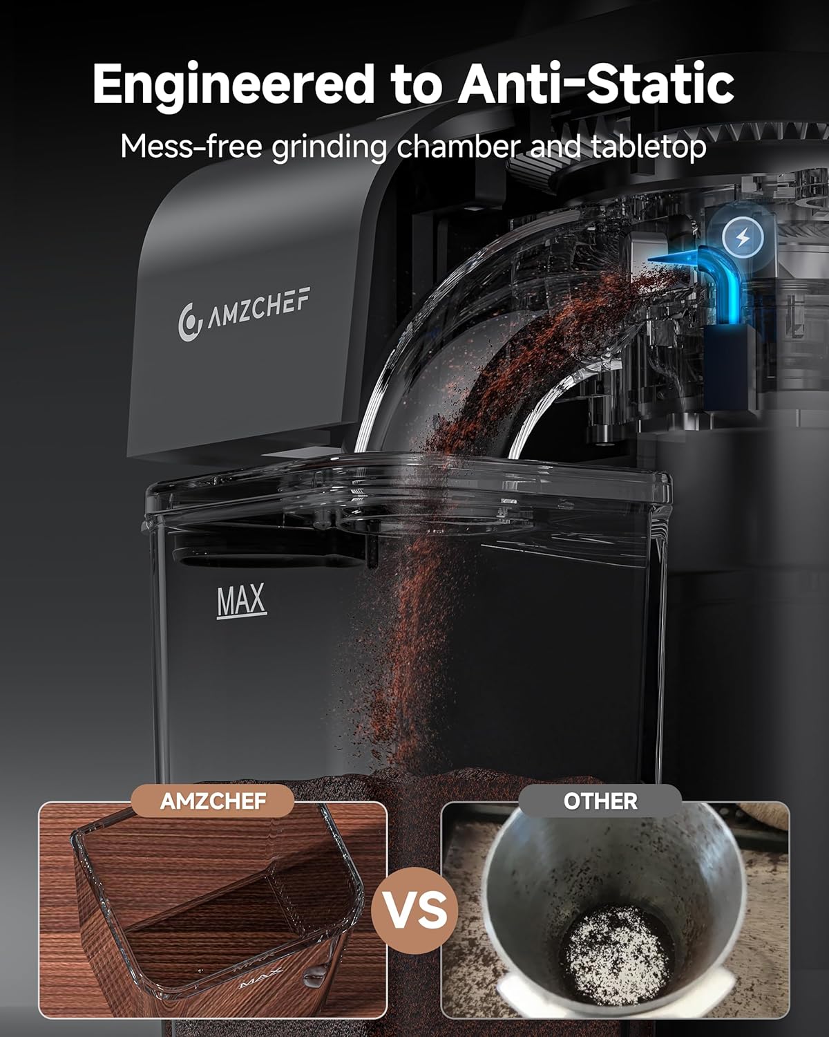 Anti-Static Plasma Tech – No More Coffee Dust This coffee grinder features an advanced plasma generator to neutralize static electricity. Say goodbye to flying grounds and messy counters—perfect for coffee grinders for home use that value cleanliness and convenience.