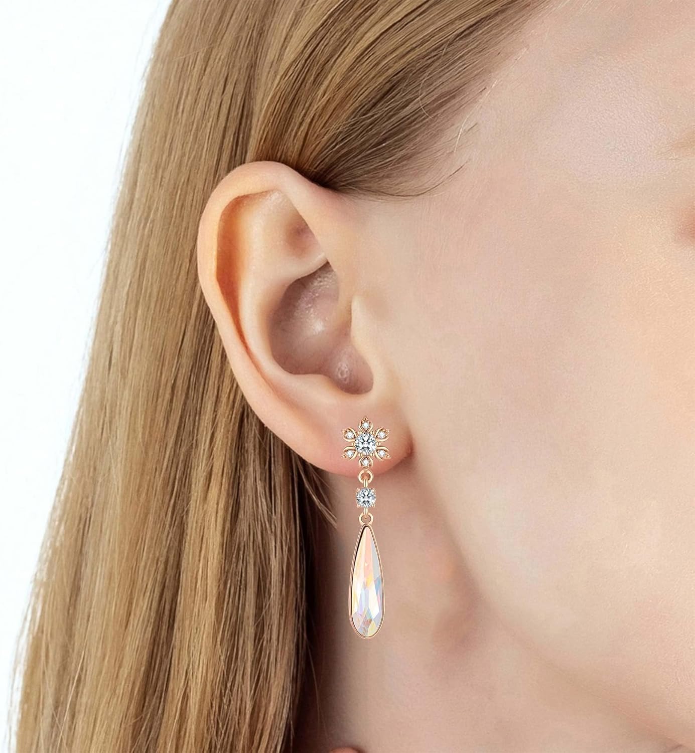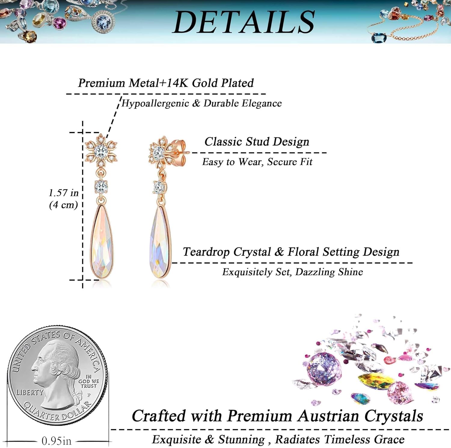 Austrian Crystal Teardrop Earrings Flower Dangle Earrings for Women 14K Gold Plated Drop Stud Earrings Hypoallergenic Jewelry
