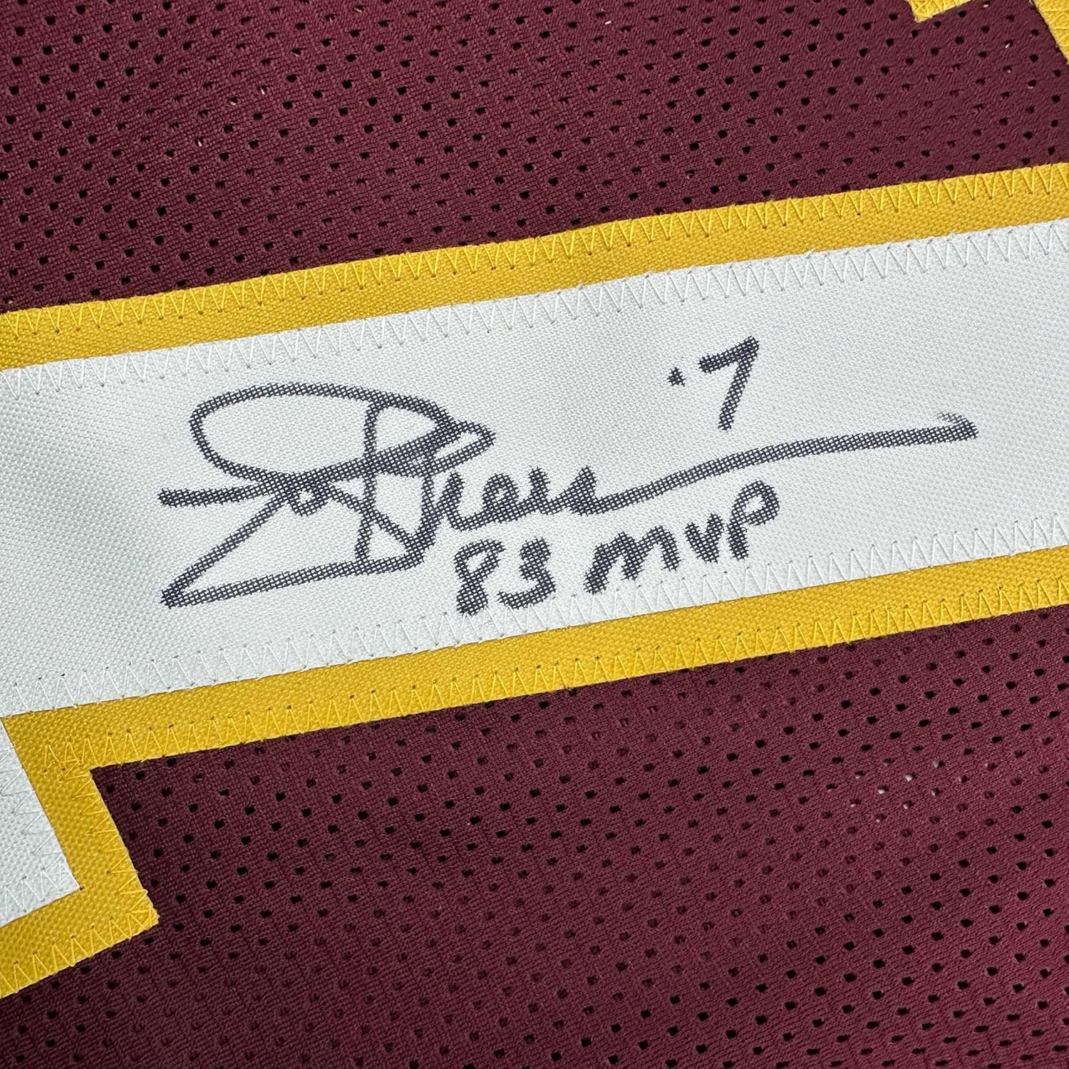 Autographed/Signed Joe Theismann 83 MVP Washington Burgundy Football Jersey JSA COA