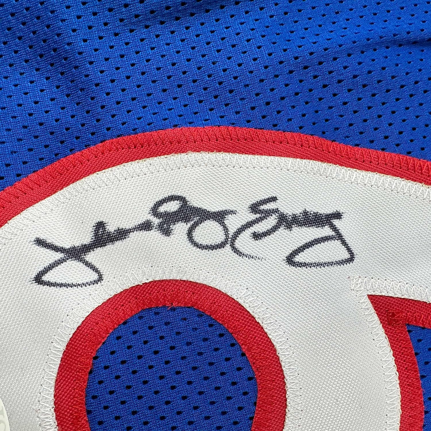 Jersey has no brand names or logos. This is a custom jersey and was not manufactured by or in any manner associated with any professional sports league or manufacturer. This custom jersey carries no professional sports league designation. The item is intended to be an autographed collectible. The custom jersey displays the name and number of the player. This item in no way is affiliated with or connected to any professional sports organization. Size is XL.