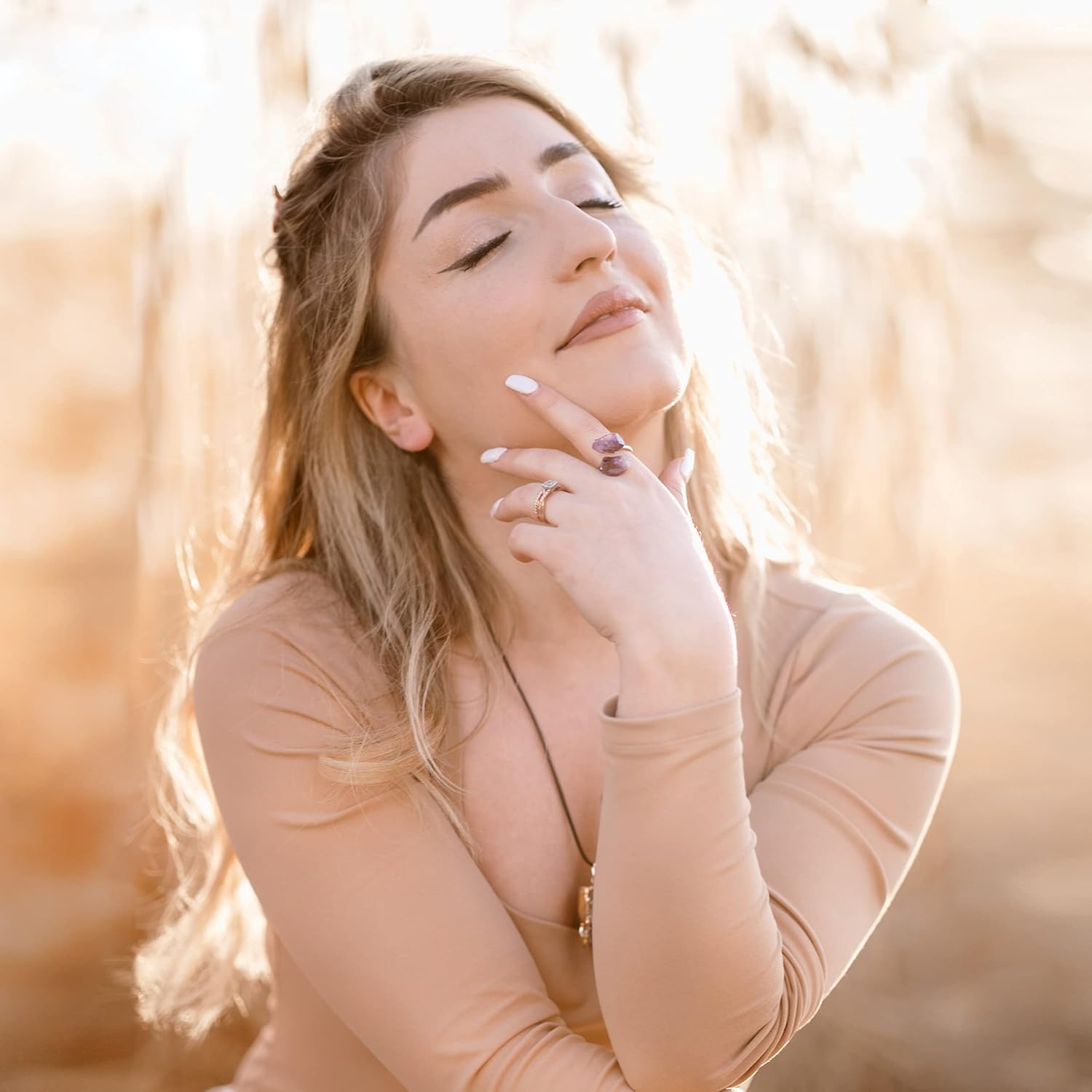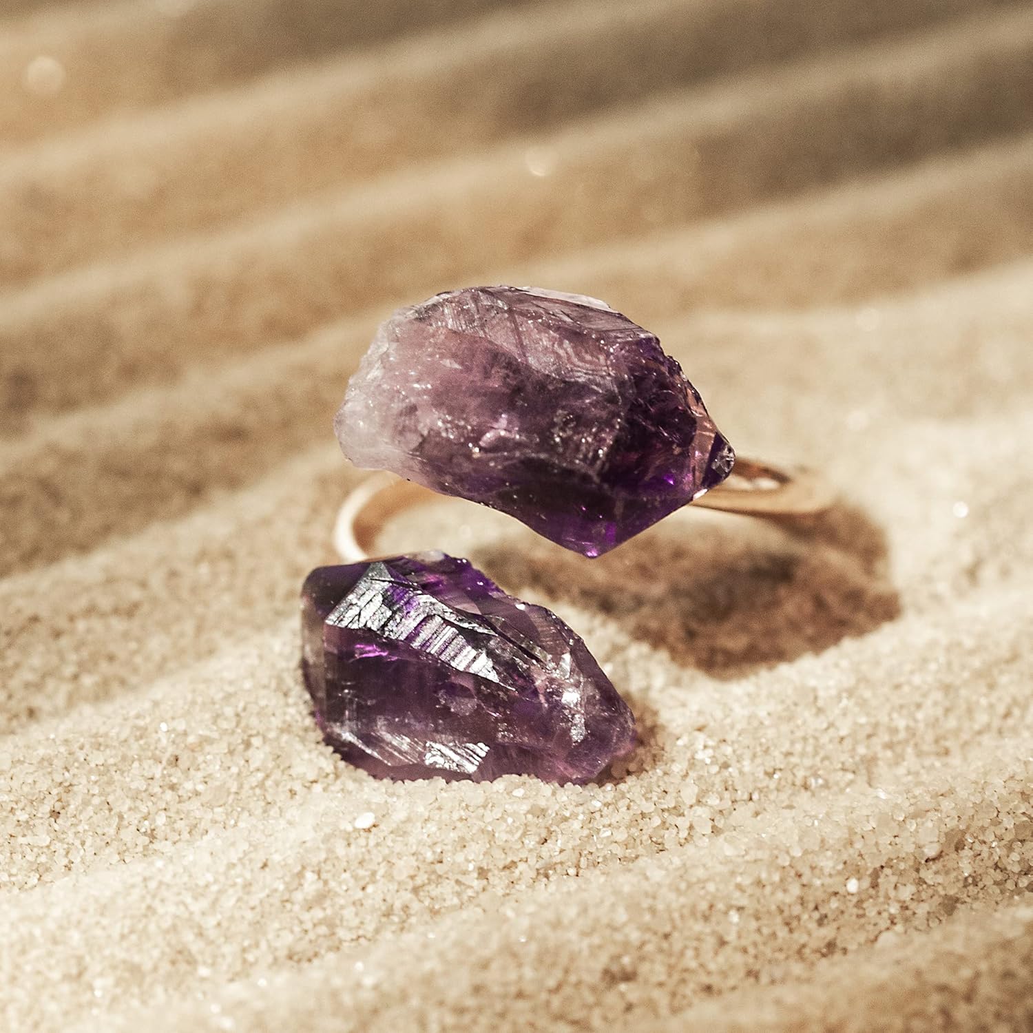 AYANA Adjustable Healing Crystal Ring | Handmade bypass ring for women with Gold-plated Copper | Statement Rings with Ethically Sourced Natural Healing Crystal Gemstone