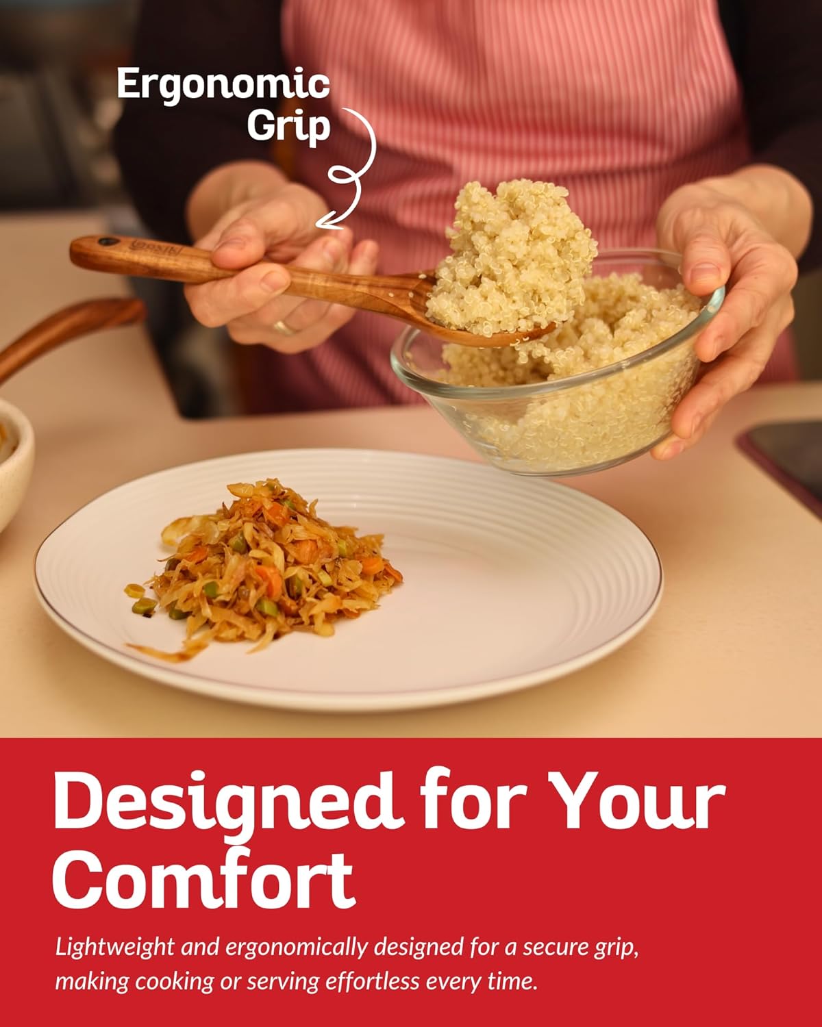 DEAL GIFT FOR COOKING ENTHUSIASTS: These wooden spoon set are beautifully crafted from teak wood which gives these Wooden Utensils an aesthetically pleasing ambiance to any kitchen. Perfect for loved ones who like to cook, chefs or even for your own personal use.