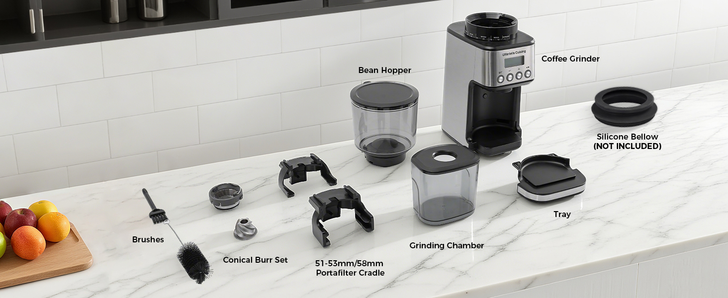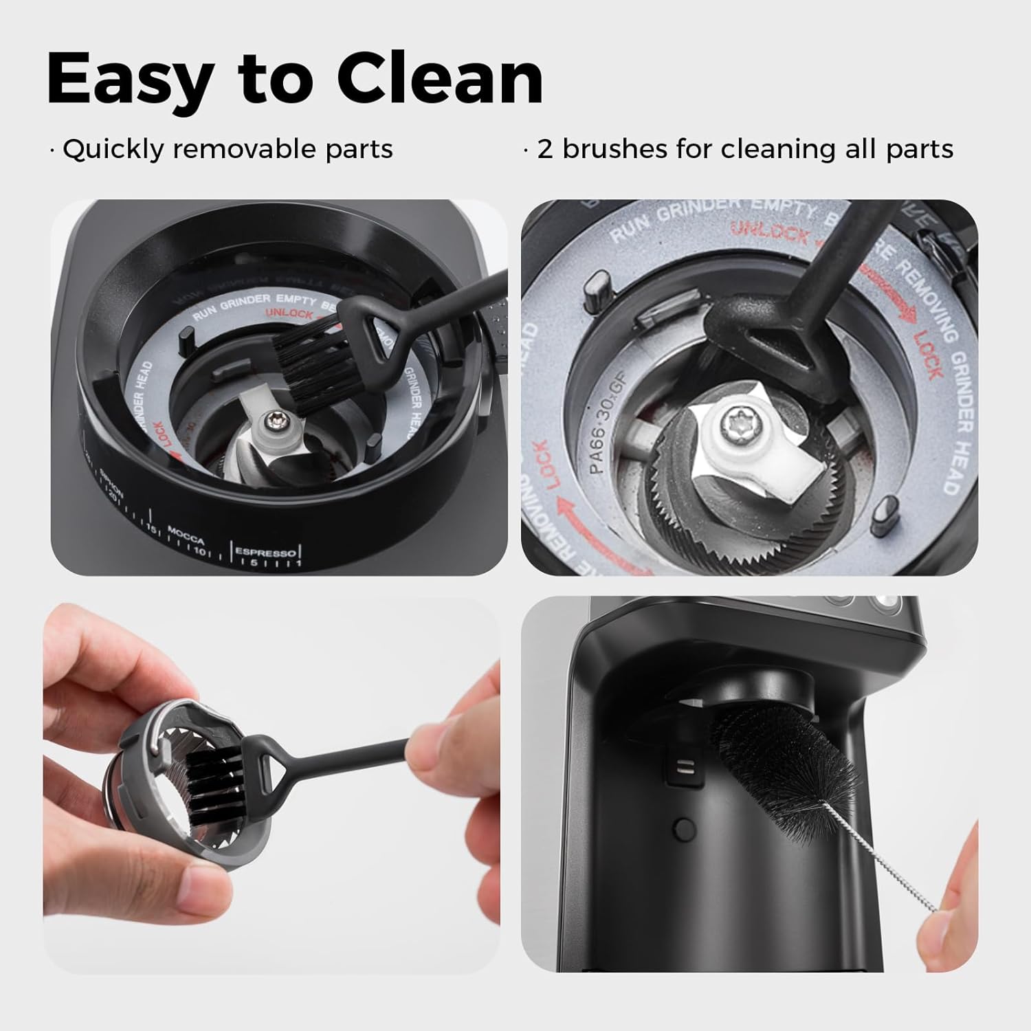 Easy Cleaning with Dual Brushes: Includes two cleaning brushes tailored for each part: plastic for the top burr, metal for the lower burr and chute. These help maintain your burr grinders for coffee beans in top condition, reducing clogs and ensuring smooth, long-term performance.