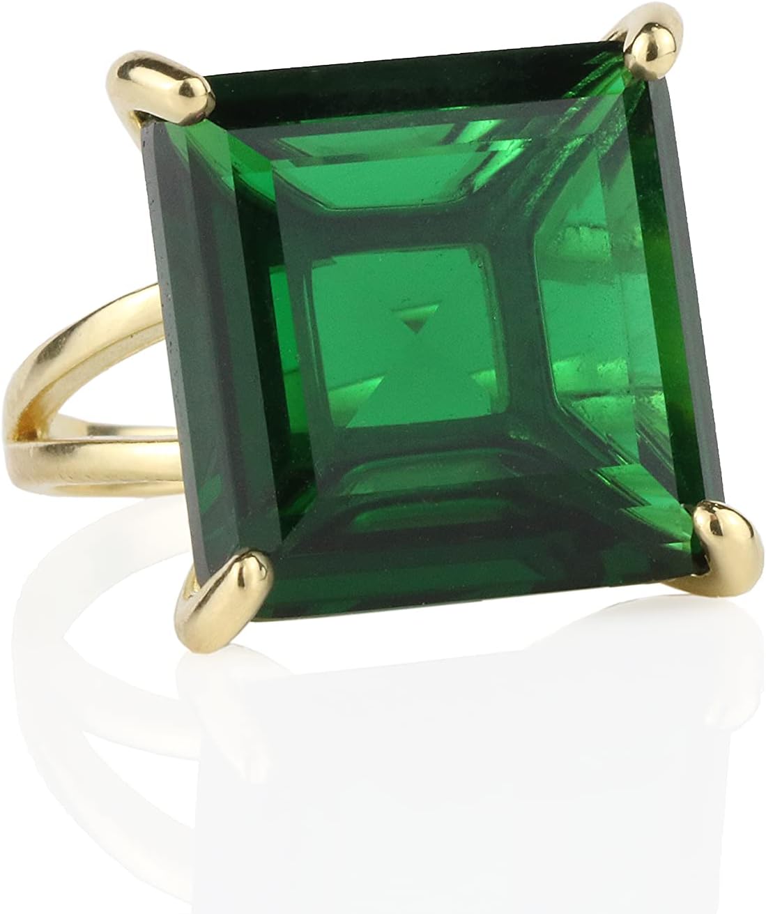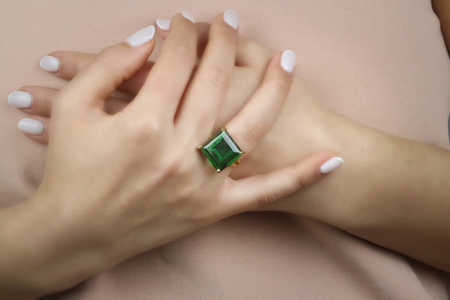 Fall in love with the elegance of this gold Emerald ring that will make a true statement. Thes lush sophistication of this square ring is a must-have in your jewelry repertoire. Stunning fashion jewelry or gift for mom, wife, or someone special in your life.