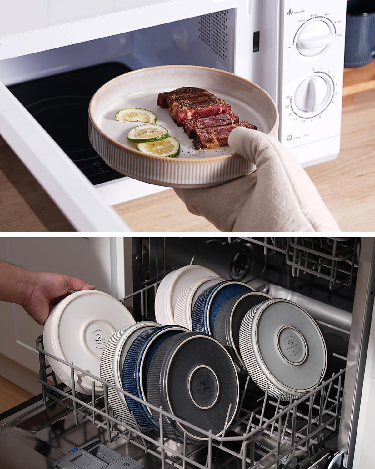 CLEAN AND SAFE: Our premium stoneware bowl is LEAD-FREE and CADMIUM-FREE, safe for family and the environment. Savor meals with confidence, from steaks to salads and desserts