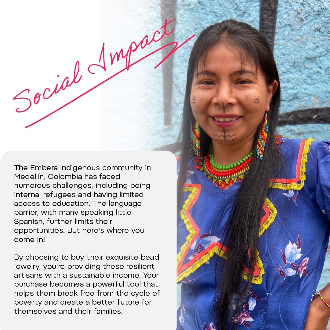 Immerse yourself in vibrant nature with the Jardin Botanico Fringe Earrings by Embera Bead Project. Featuring cream, mustard, green, orange, and gold hues, these boho beaded earrings showcase a stunning floral-inspired design. Each piece is meticulously handwoven by Embera artisans using high-quality glass beads and hypoallergenic stainless steel findings, making them both lightweight and perfect for sensitive ears. Beyond beauty, these seed bead earrings for women empower the displaced Embera Indigenous community through sustainable income and cultural preservation. This meaningful initiative, featured on CBN, ensures every purchase supports artisan livelihoods while adding botanical elegance to your collection. Whether you’re dressing up for summer, festivals, or everyday boho style, Jardin Botanico combines nature’s colors with heart-driven impact.