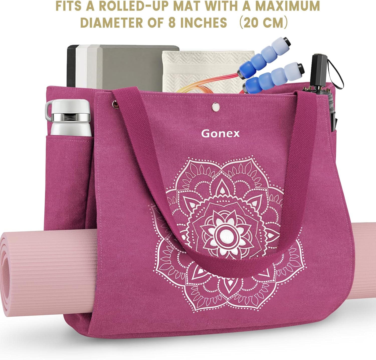 Gonex Yoga Mat Bag, Yoga Gym Bag Tote Bag with Multi Pockets For Women Men, Canvas Yoga Mat Carrier Take in Out Mat Easily For Pilates Travel Workout Office