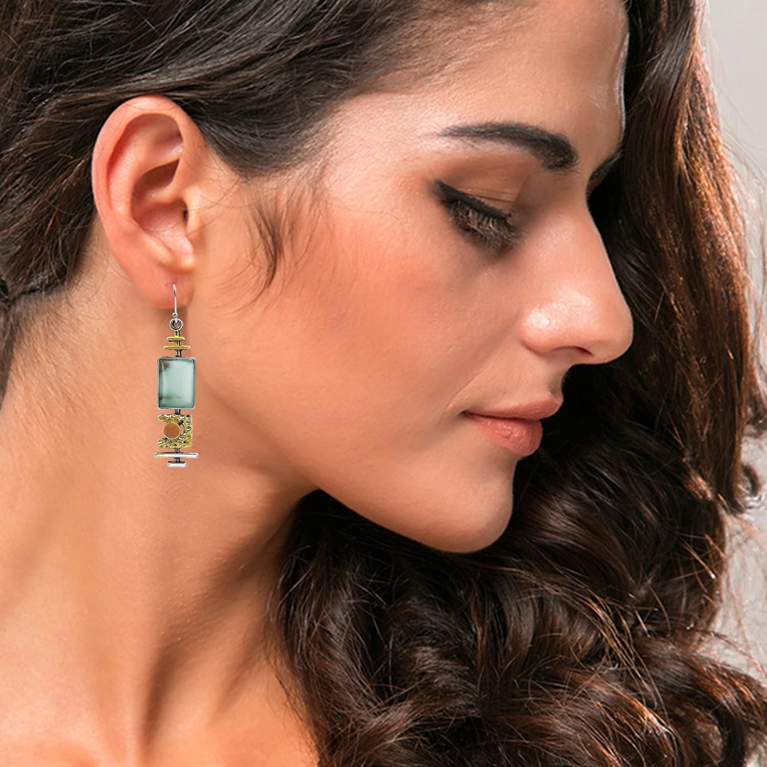 Green Handmade Boho Natural Gemstone Charm Earrings Gold Stone Bead Drop Dangle Earrings for Women
