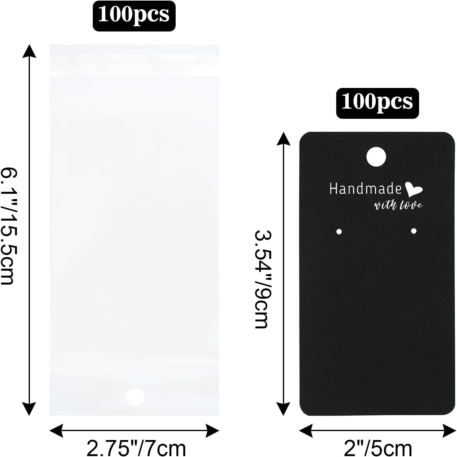 [100pcs Earring Display Cards] – Includes 100pcs handmade with love earring cards and 100pcs clear bags. Each earring tag measures about 2 x 3.5 inches/5cm x 9cm. Each jewelry bag measures about 2.75×6 inches/7×15.5cm Earring display cards with pierced holes for displaying earrings. The earring cards have holes at the top for display hanging.