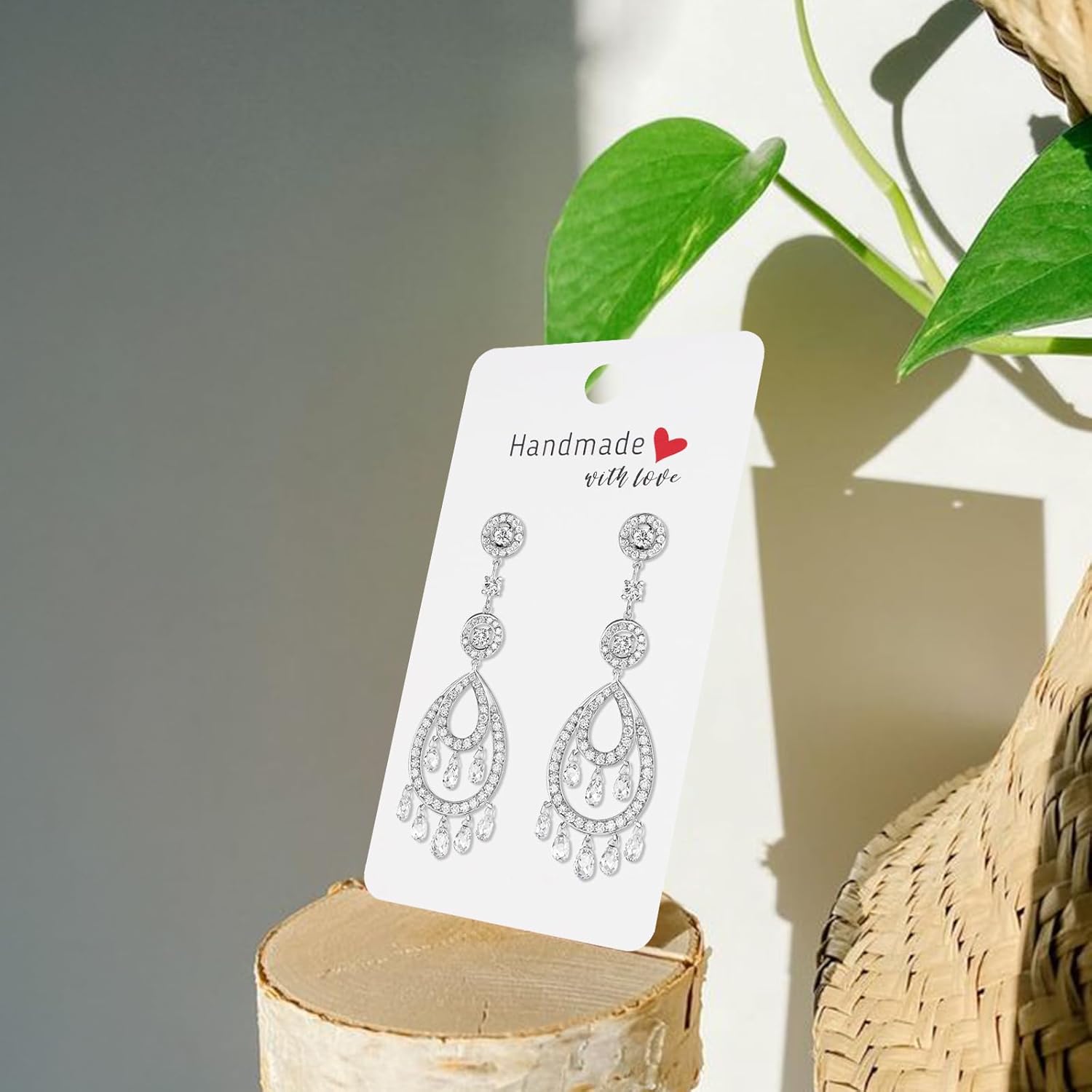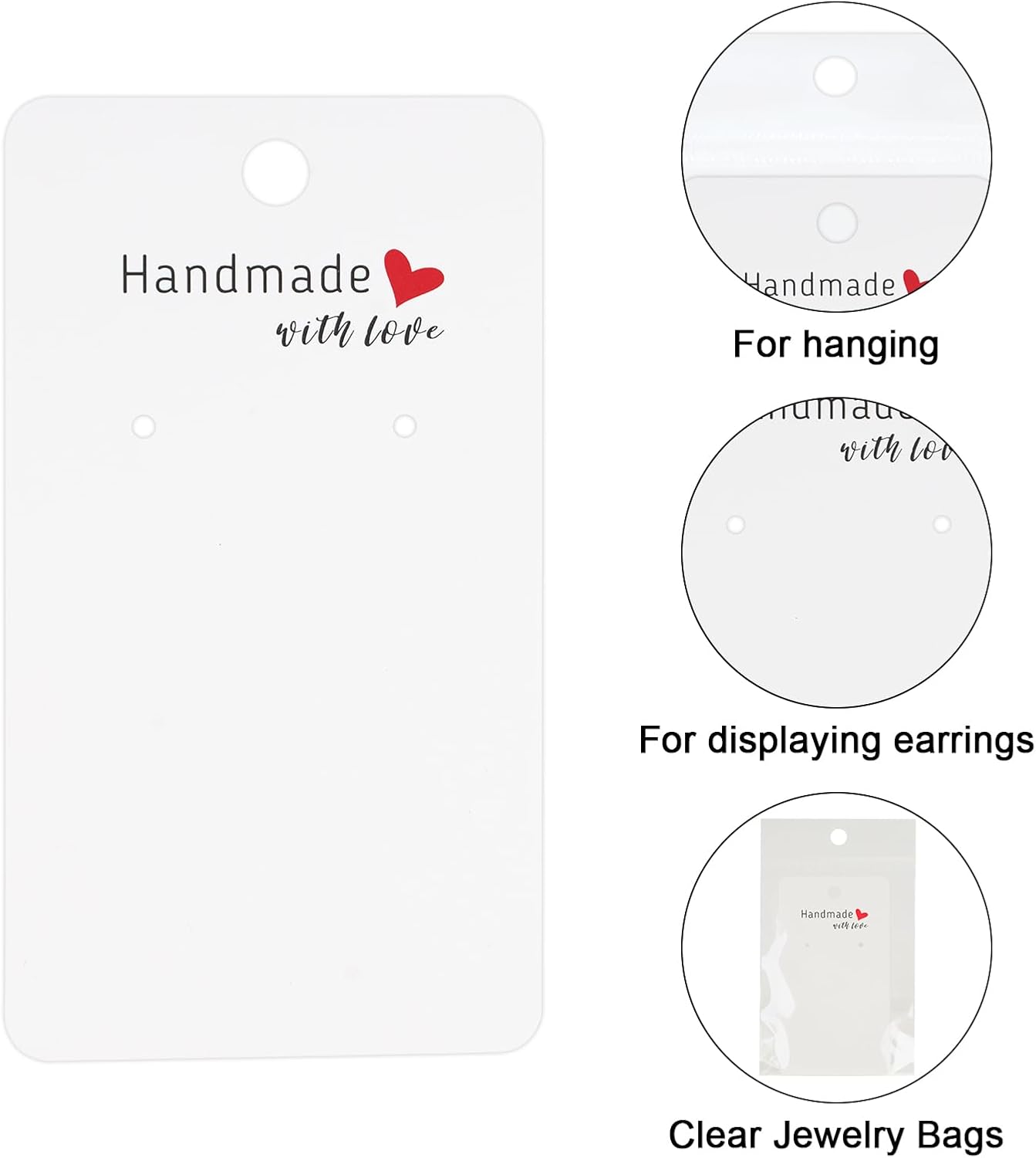 joycraft 100Pcs Earring Display Cards with Bags, 2×3.5 inch Earring Display Holder Cards, White Handmade with Love Earring Tags for Selling, Hanging Earring, DIY Jewelry Crafts, Retail