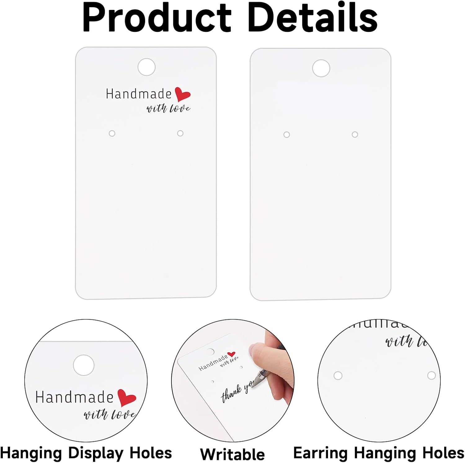 [200pcs Earring Display Cards] – Includes 200pcs “handmade with love” earring cards..Ever tags measures about 2″ x 3.5″/5cm x 9cm. Earring wrapper cards with pierced holes for displaying earrings and other jewelry. The earring cards have holes at the top for display hanging.