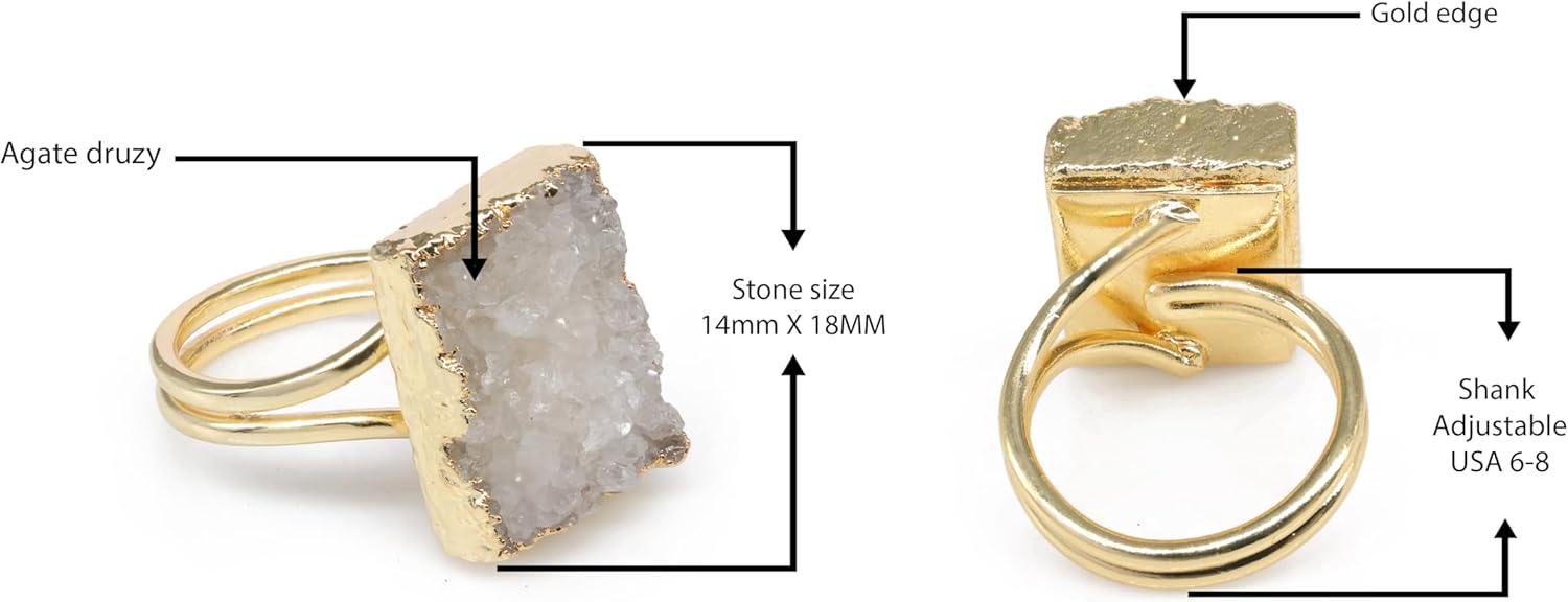 White Druzy Rings – Unique Gemstones Large Gemstone 14 * 18 MM