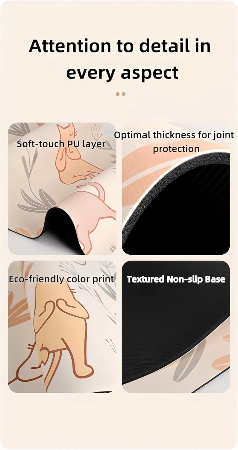 🐾 【Artistic Yoga Companion】Graceful hand-drawn kittens practicing Downward Dog & Tree Pose dance across a clean white mat, surrounded by blooming flowers – turns your yoga flow into a joyful storytelling session.