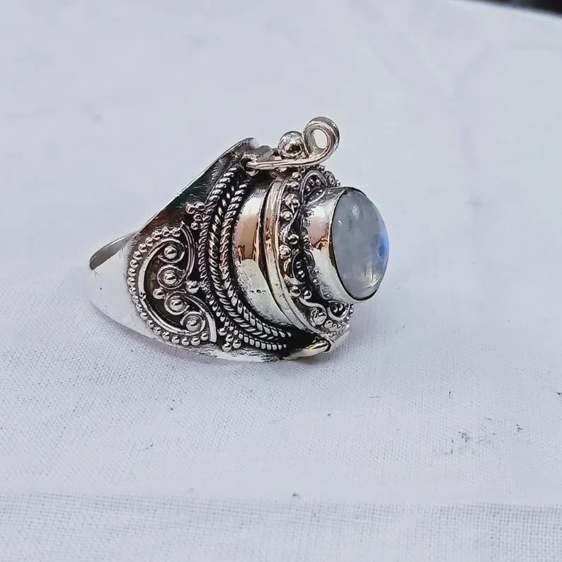 🤍Natural Rainbow Moonstone Gemstone Ring, Poison Box Ring, Secret Compartment Ring, Blue Flash Moonstone Gemstone Ring, Natural Moonstone Jewelry, Gift For Her, Attractive Ring, Promise Ring, Vintage Jewelry, Healing Crystal Ring
