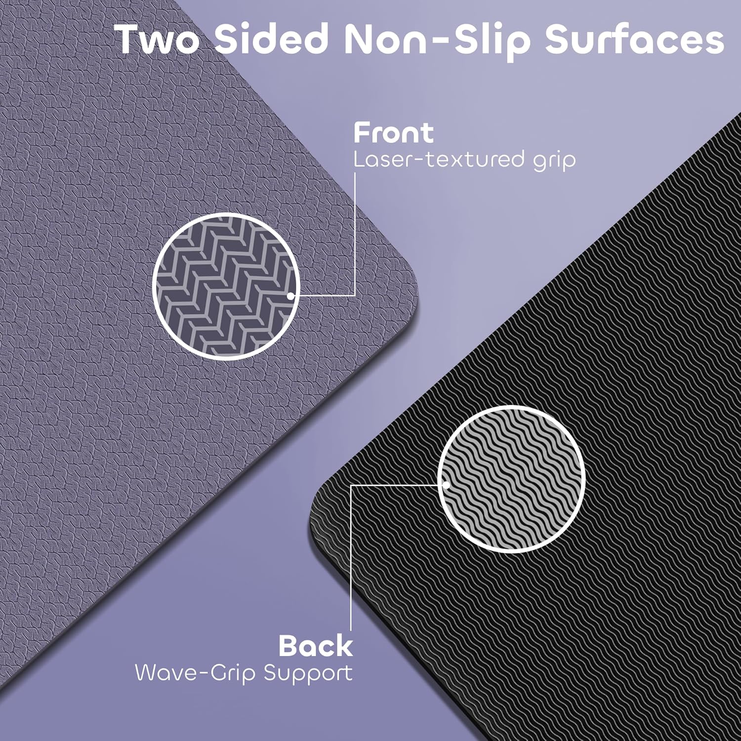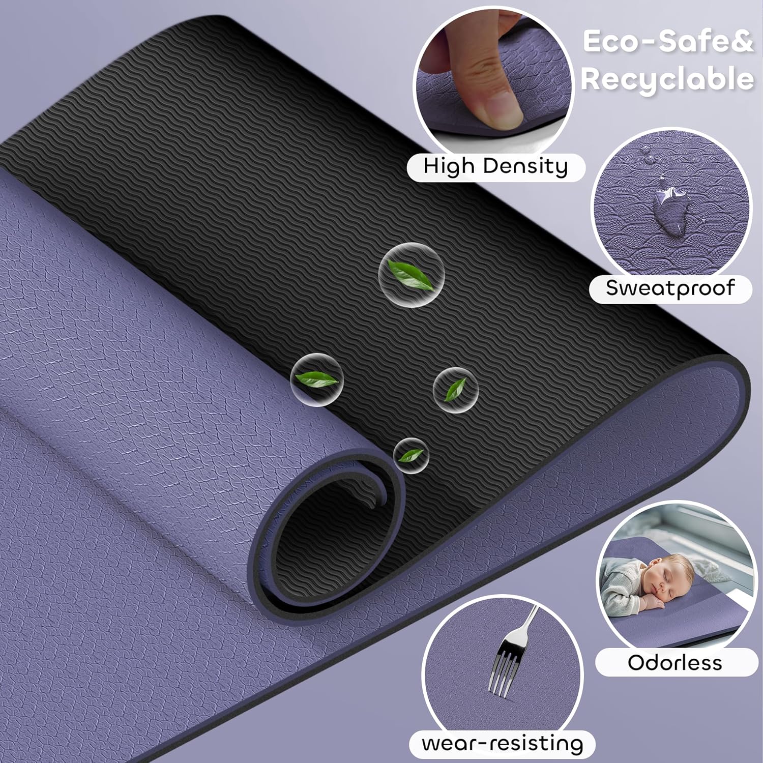 Welia 6mm TPE Yoga Mat with Dual-Sided Non-Slip Textures – Superior Comfort & Responsive Cushioning for All-Level Yogis. Ideal for Yoga, Pilates, Strength Training, and Camping. The snake-patterned front grips sweaty palms in hot yoga, while the wave-textured back stabilizes strength training. Eco-Friendly, SGS-Certified SGS certified odourless TPE, Lightweight with Easy-Clean Surface. 24” Wide Anti-Tear Design for Women, Seniors, and Beginners. 3 Dual-Color Options (Orange/Black, Green/Black, Purple/Black).