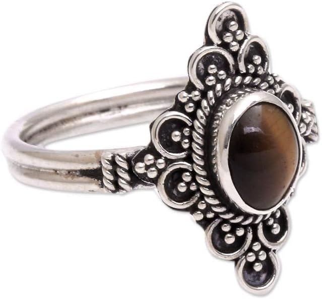 About this item: For a dreamy accessory to add to your wardrobe, this cocktail ring is designed by Bali’s Ketut Sulastri. She handcrafts the ring of sterling silver with an intricate crown that is centered by an oval cabochon of gleaming tiger’s eye….