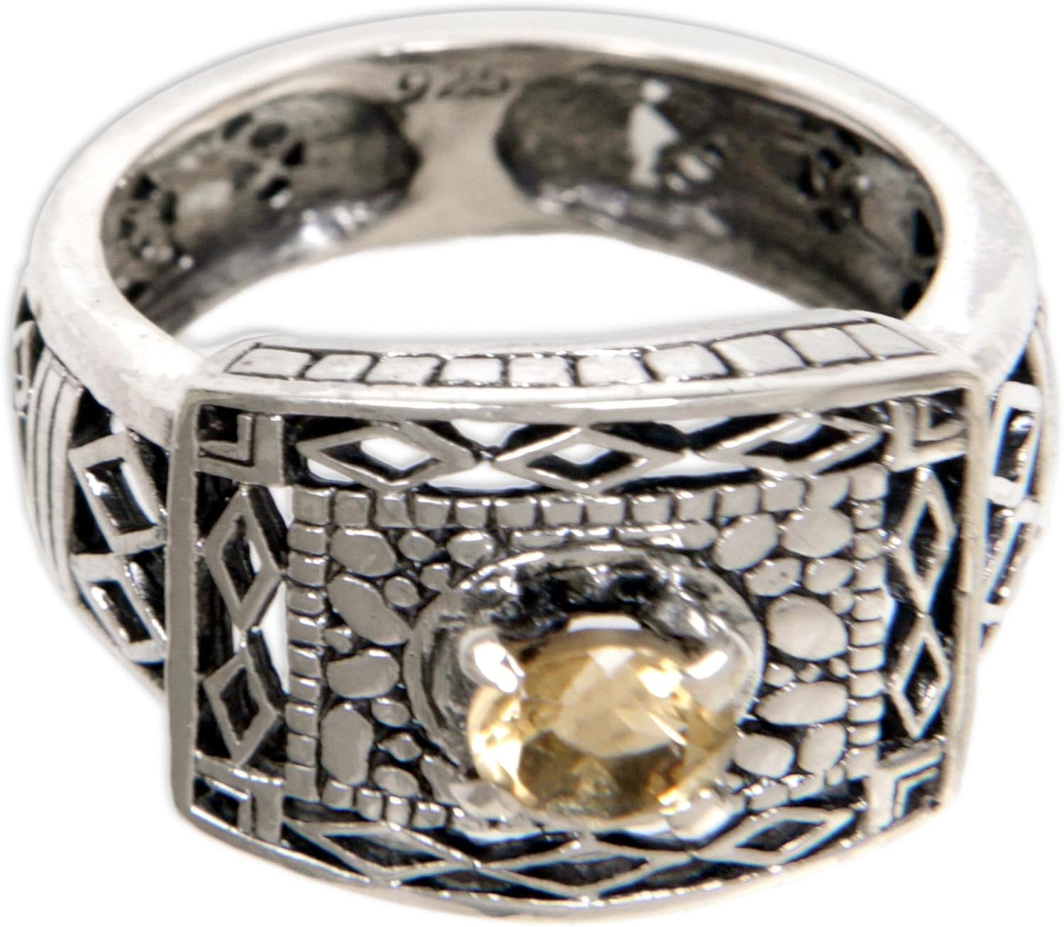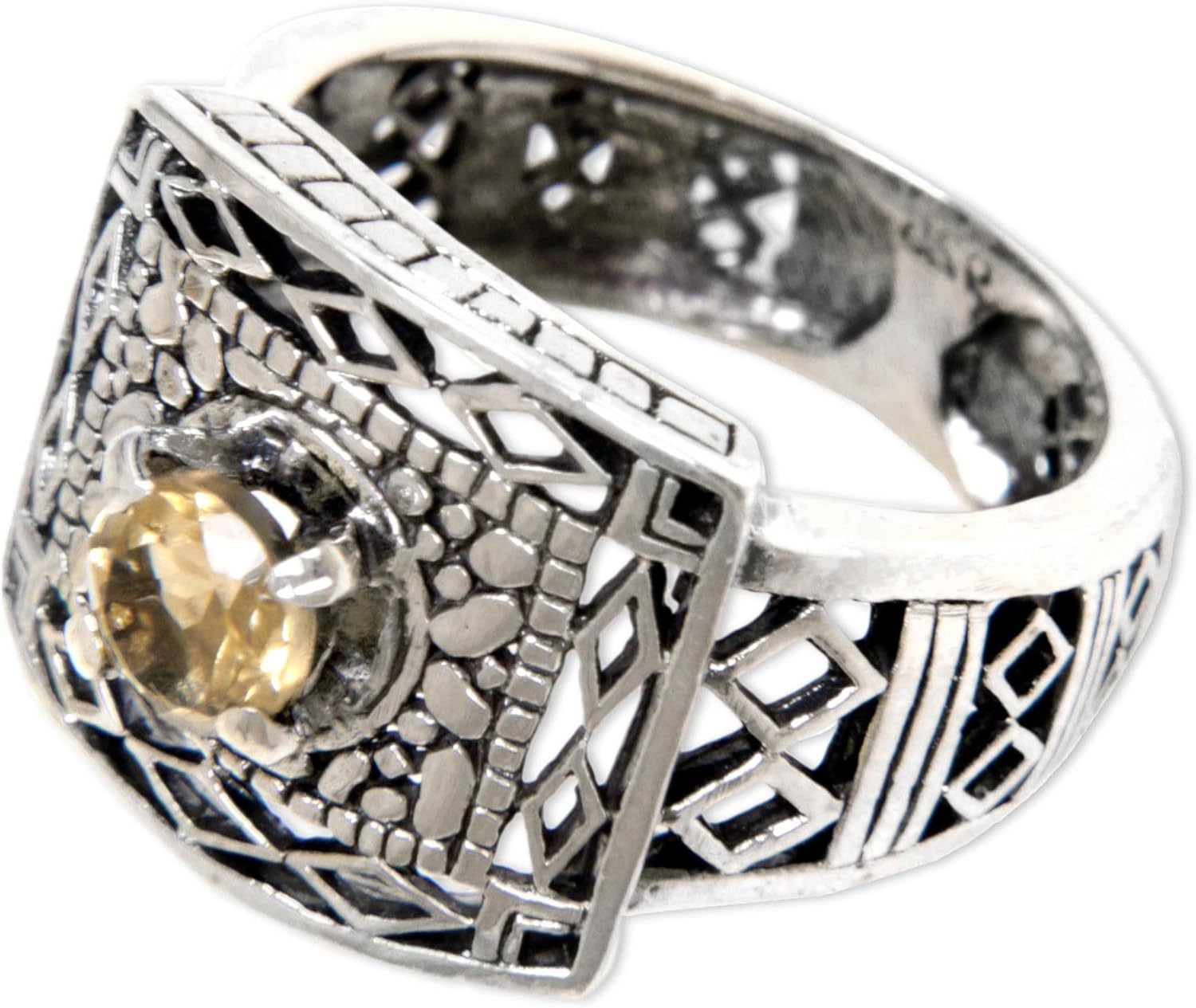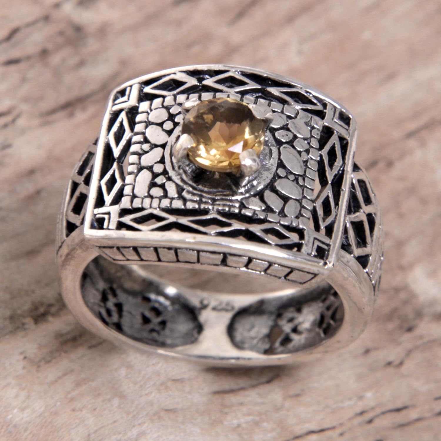 Novica Artisan Handmade .925 Sterling Silver Citrine Cocktail Ring Metallic Yellow Indonesia Gemstone Birthstone ‘Bali Temple’