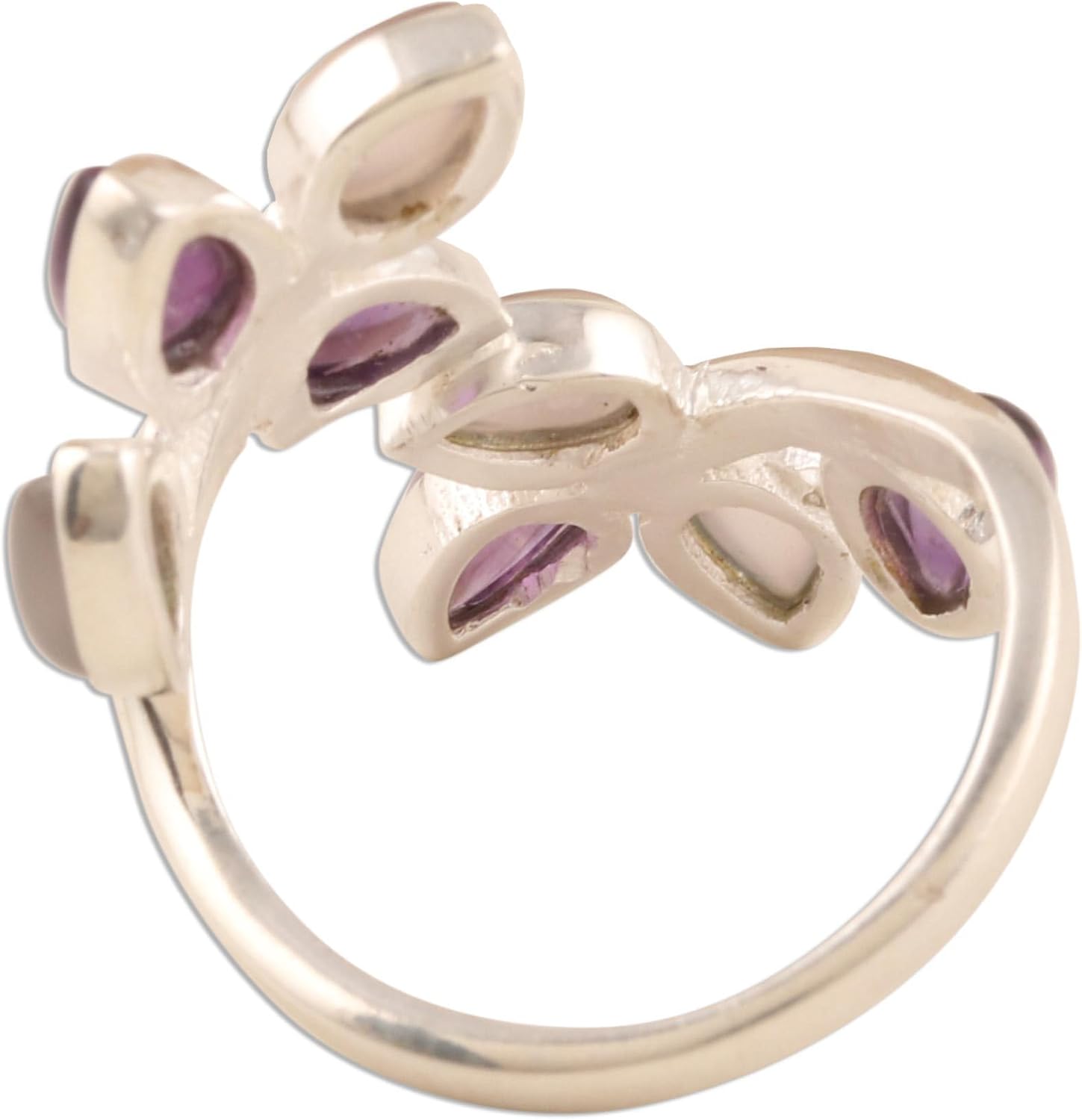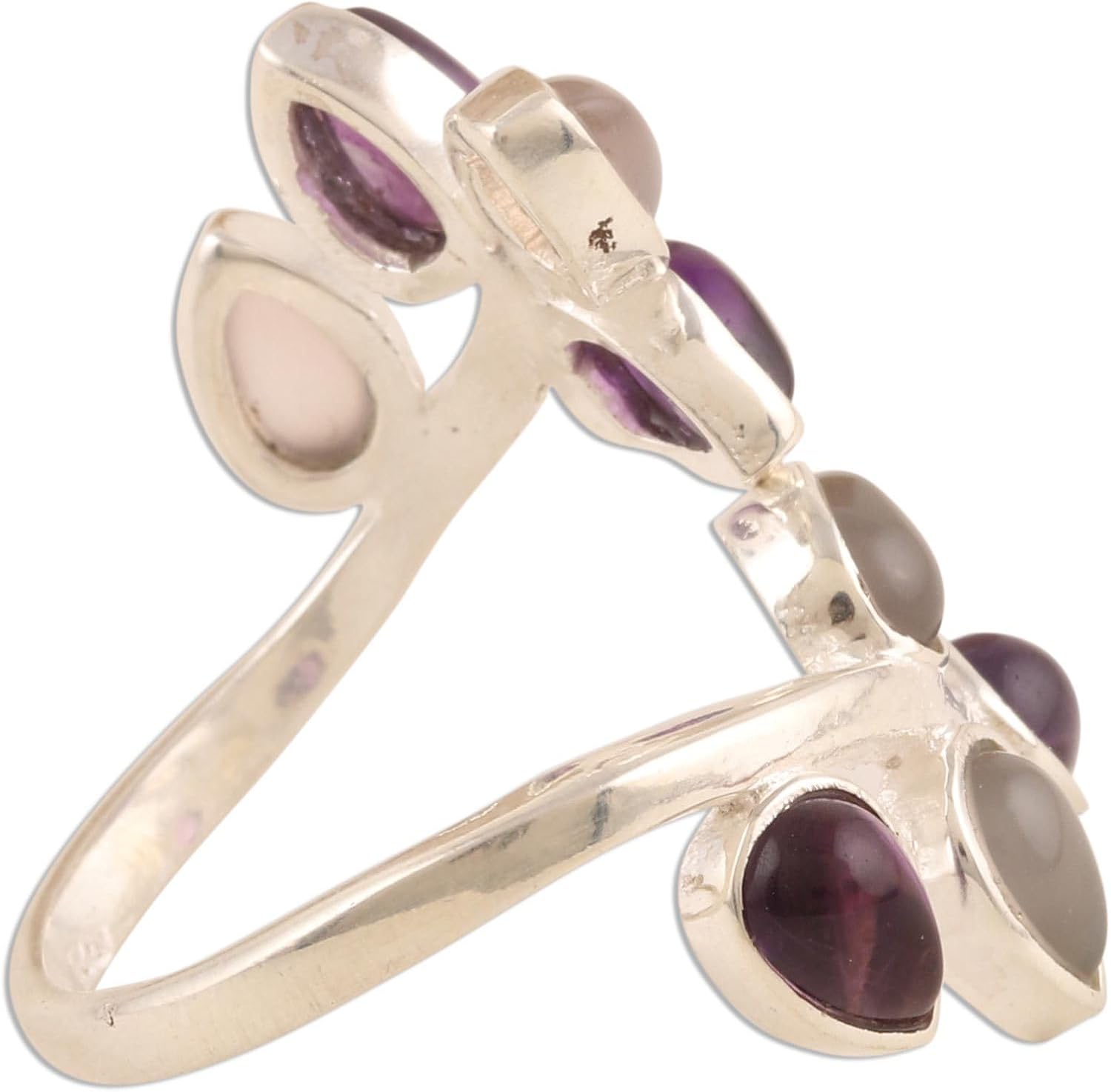 About this item: This pretty cocktail ring from designer Neetu Barathi in India showcases the pastel appeal of amethyst and rose quartz. Artisans set the cabochon stones in sterling silver bezels, like leaves on a branch….