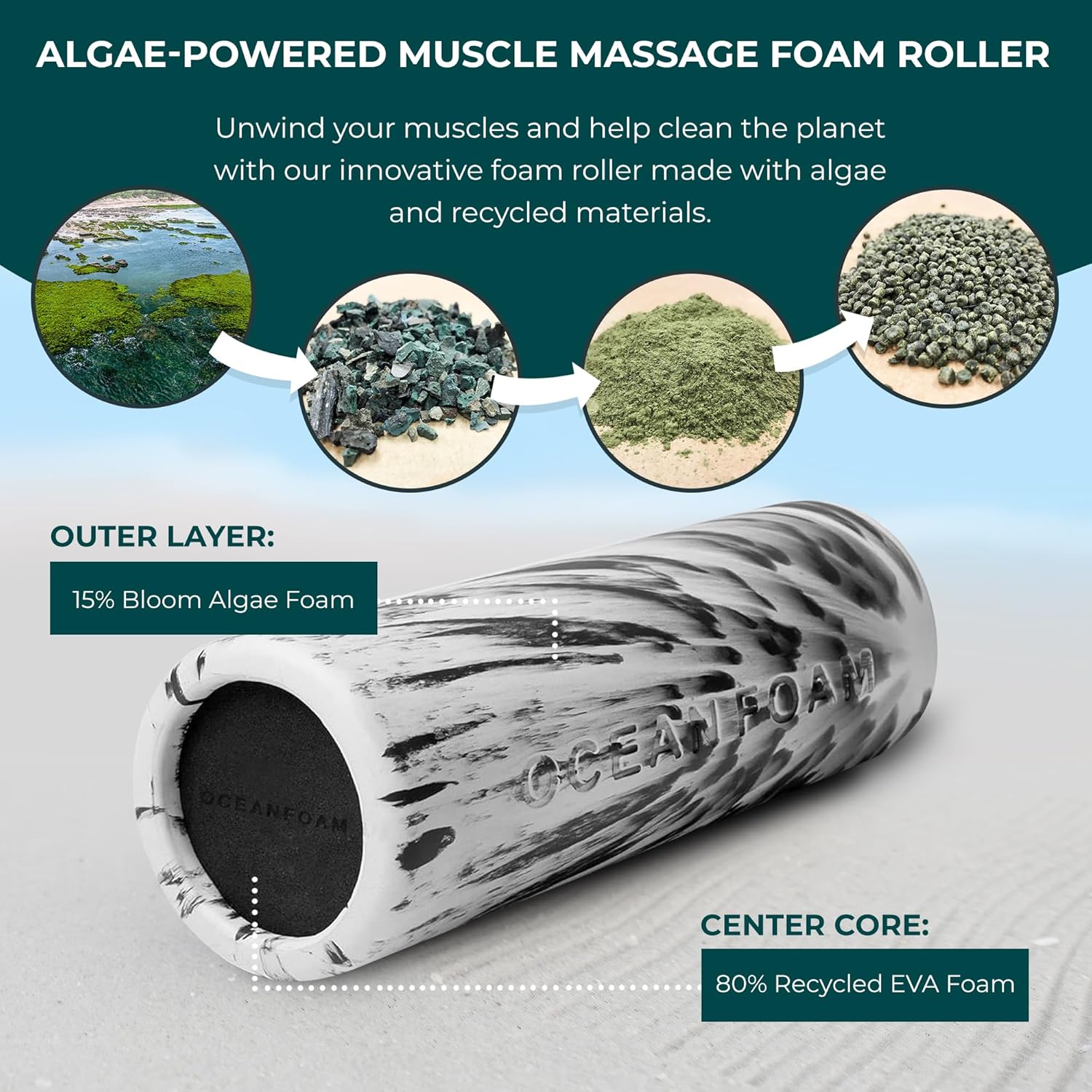 SUSTAINABLE MATERIALS: Our massage rollers are made with eco-conscious materials, including recycled foam and a 15% Bloom algae-based outer layer, providing durability while reducing environmental impact.