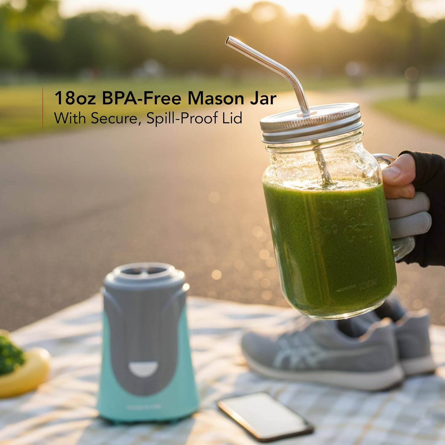 REUSABLE & DISHWASHER SAFE – The mason jar and all accessories are dishwasher-safe, making cleanup quick and effortless. The base can be easily cleaned by simply wiping it with a damp cloth, ensuring a hassle-free experience. Additionally, the concealed cord storage keeps your countertop clutter-free when the blender is not in use.