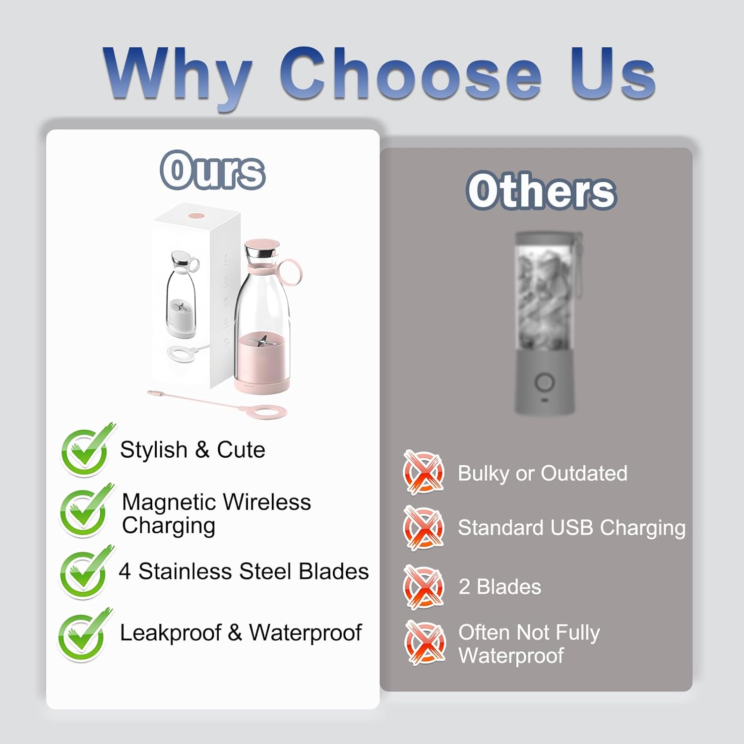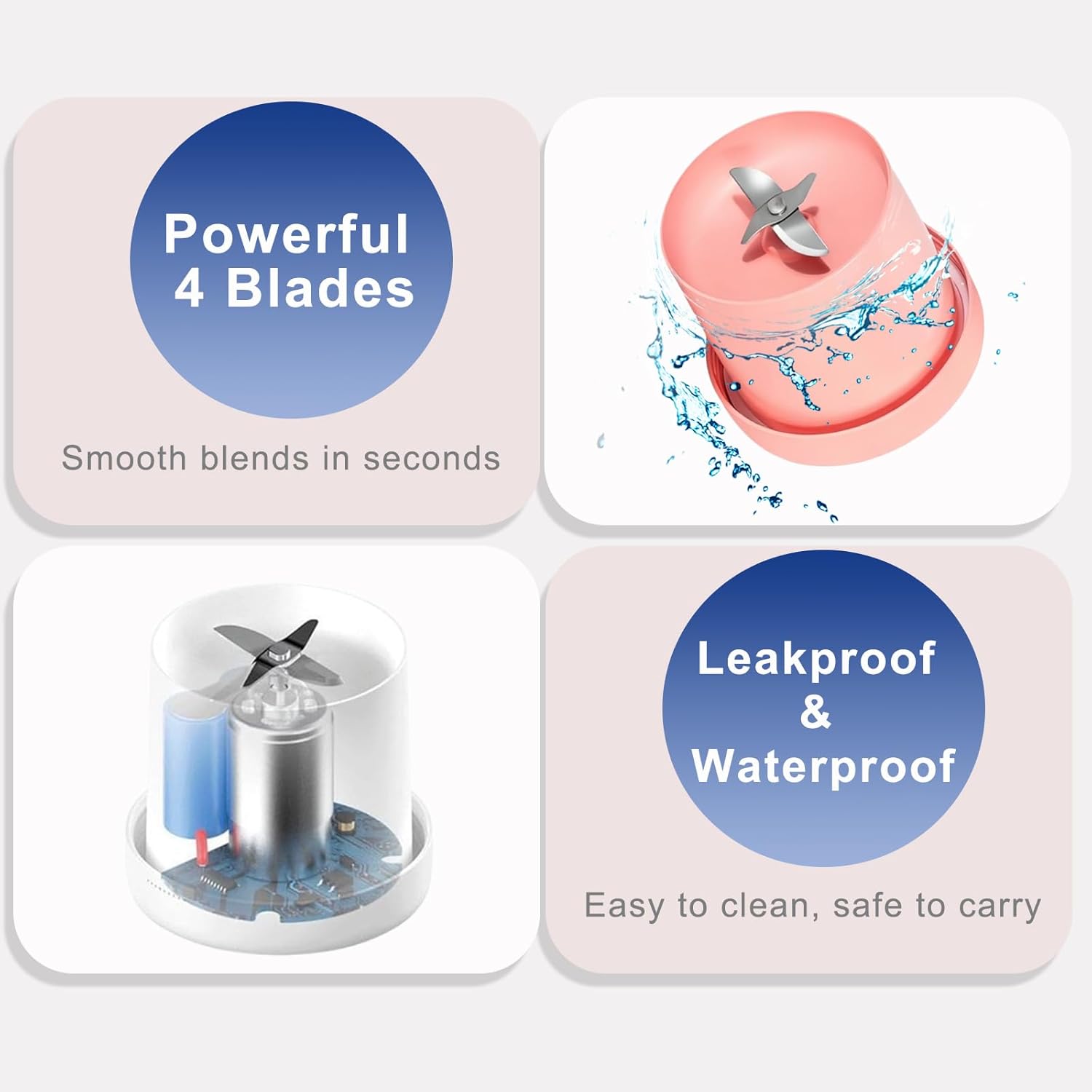Portable Personal Mini Blender for Women: 11.8 fl oz Small Smoothie Juicer Cup for Shakes and Baby Food with Wireless Charging – Ideal for Moms & Commuters