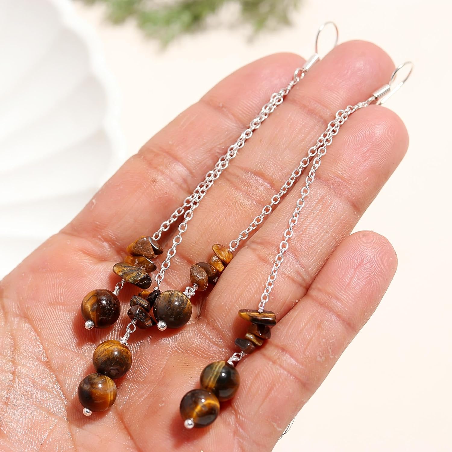 POSHPENDANT Handmade Gemstone Dangle Drop Earrings – Genuine Healing Crystals for Chakra Energy – Silver-Plated Boho Western Long Dangle – Gift-Ready Spiritual Birthstone Jewelry for Women