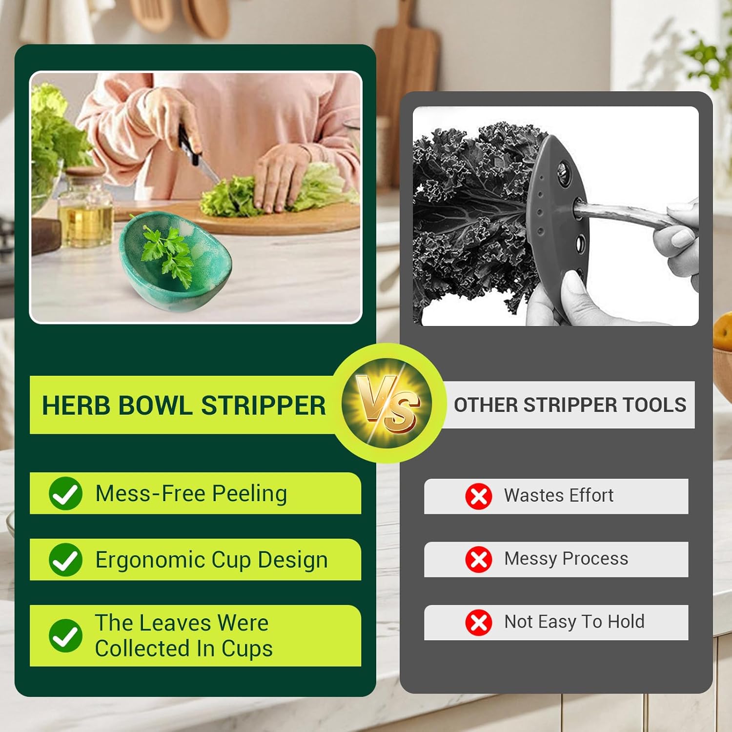 VERSATILE 4-HOLE DESIGN: The innovative 4-it is suitable for a variety of herbs, green leafy vegetables and other kitchen tasks, such as a leaf remover cup. This herb bowl stripper is a must-have for making salads, garnishes, smoothies, and more, it is an ideal assistant.