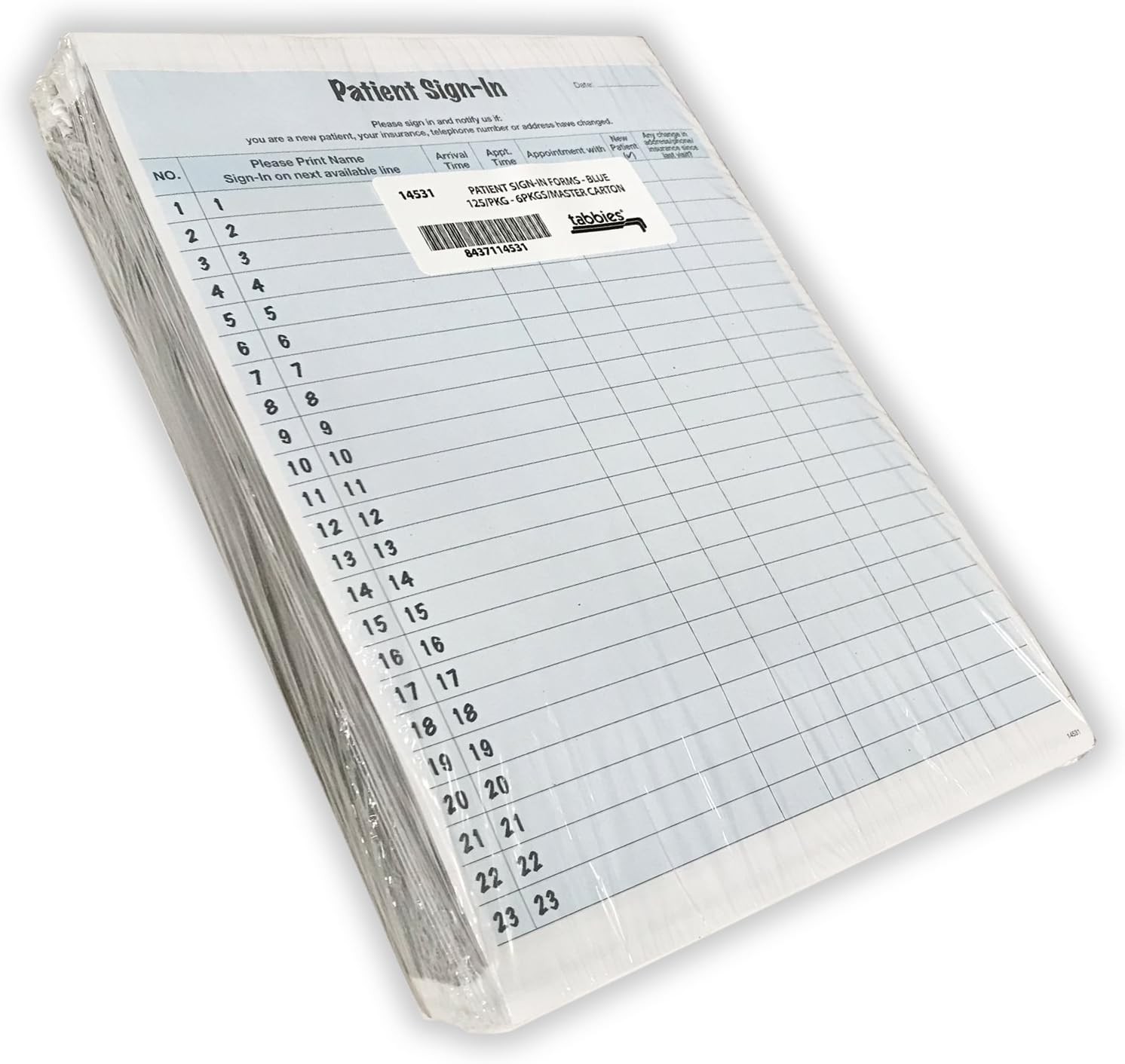 Tabbies Patient Sign-In Label Forms, 8-1/2″ x 11″ Form, Blue, 23 Labels/Sheet, 125 Sheets/Pack, Confidentially Sign In Your Patients, Also Provides a Daily Patient Log (14531)