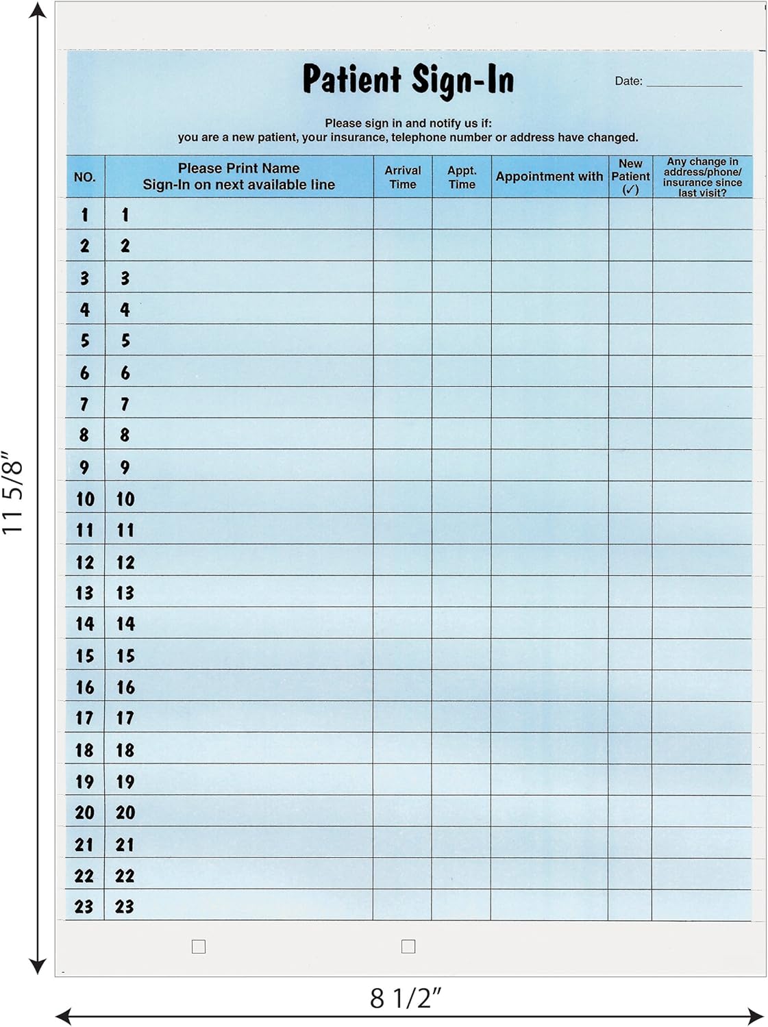 Can be used as confidential daily patient log as well as sign-in sheet.