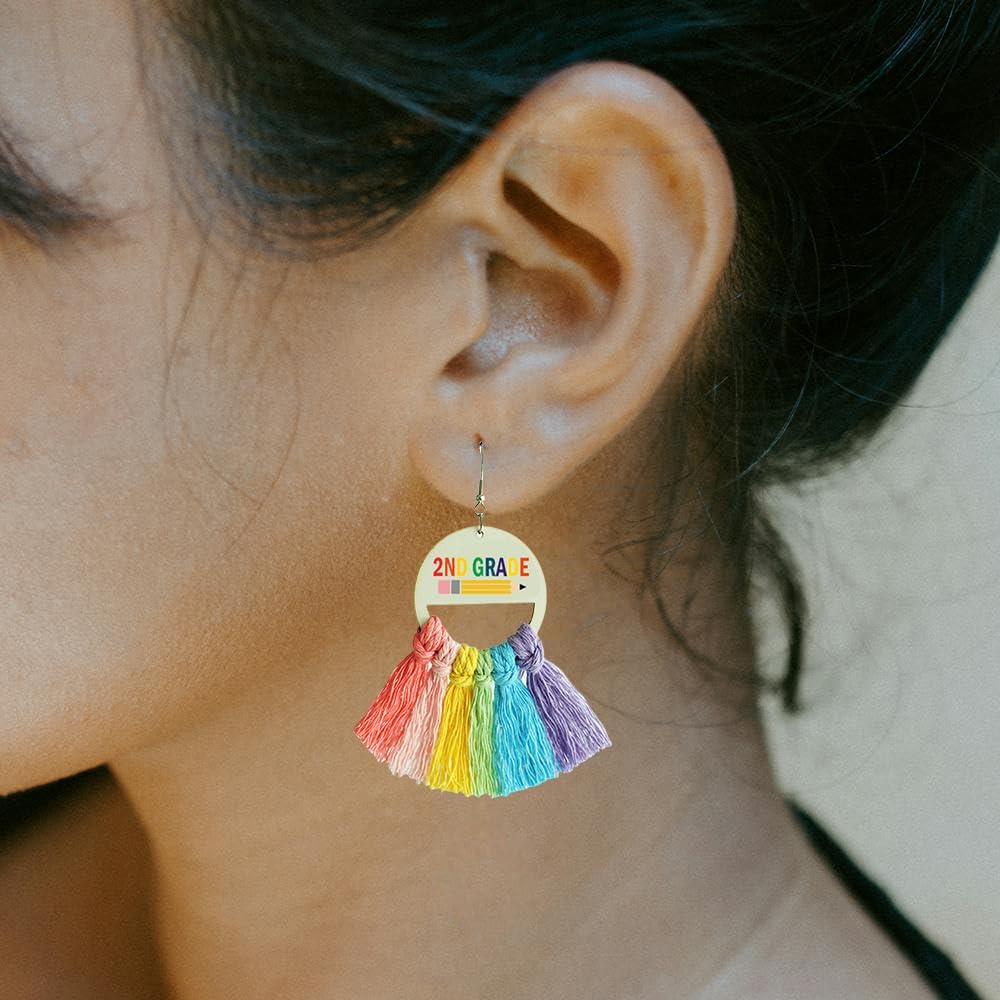 The back to school earrings material is composed of wood and alloy,and the colored woven tassel is composed of cotton thread.Light material,not easy to fade,comfortable to wear