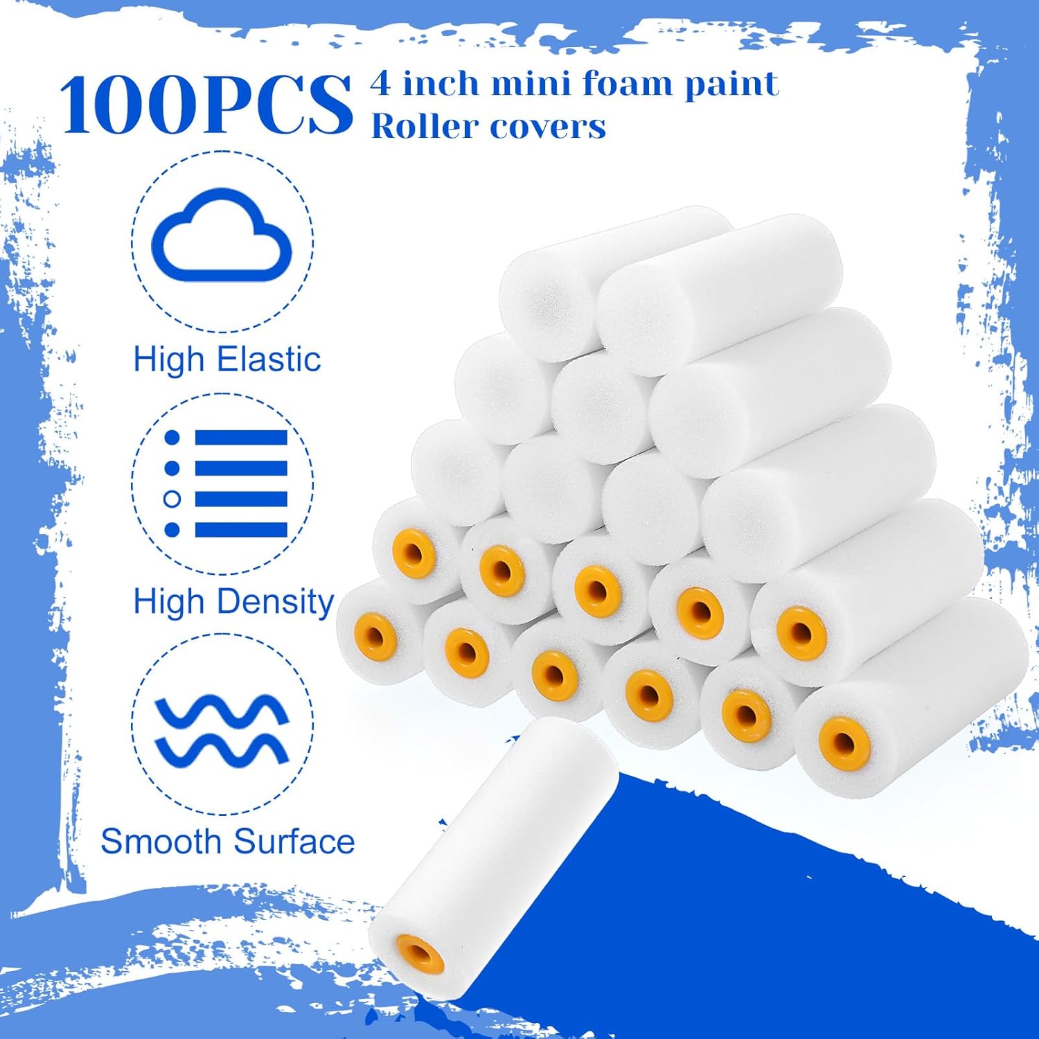 【Efficient Replacement】This set includes 100 high-density foam roller covers, designed for easy replacement, ensuring efficient completion of painting projects. Compatible with standard roller frames, they offer flexibility and ease of use.