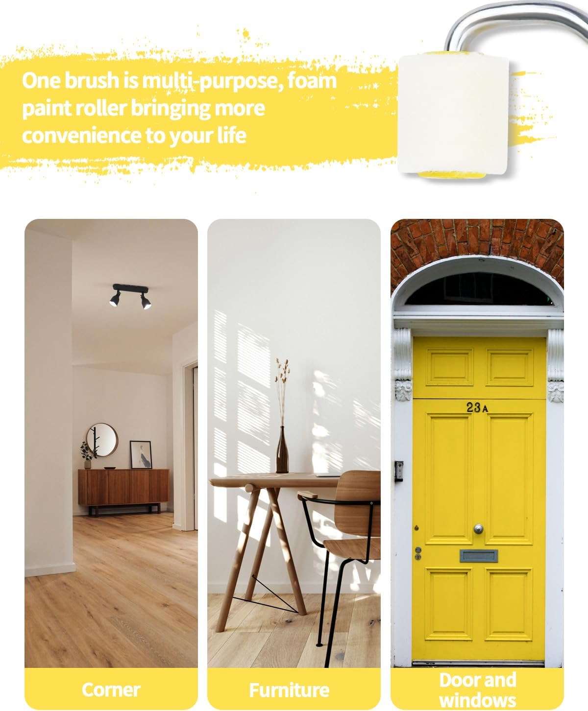 Multifunctional Application: The mini roller brush can not only be used for coating and paint construction, but also for cleaning, sanding and many other scenarios. One brush is multi-purpose, foam paint roller bringing more convenience to your life