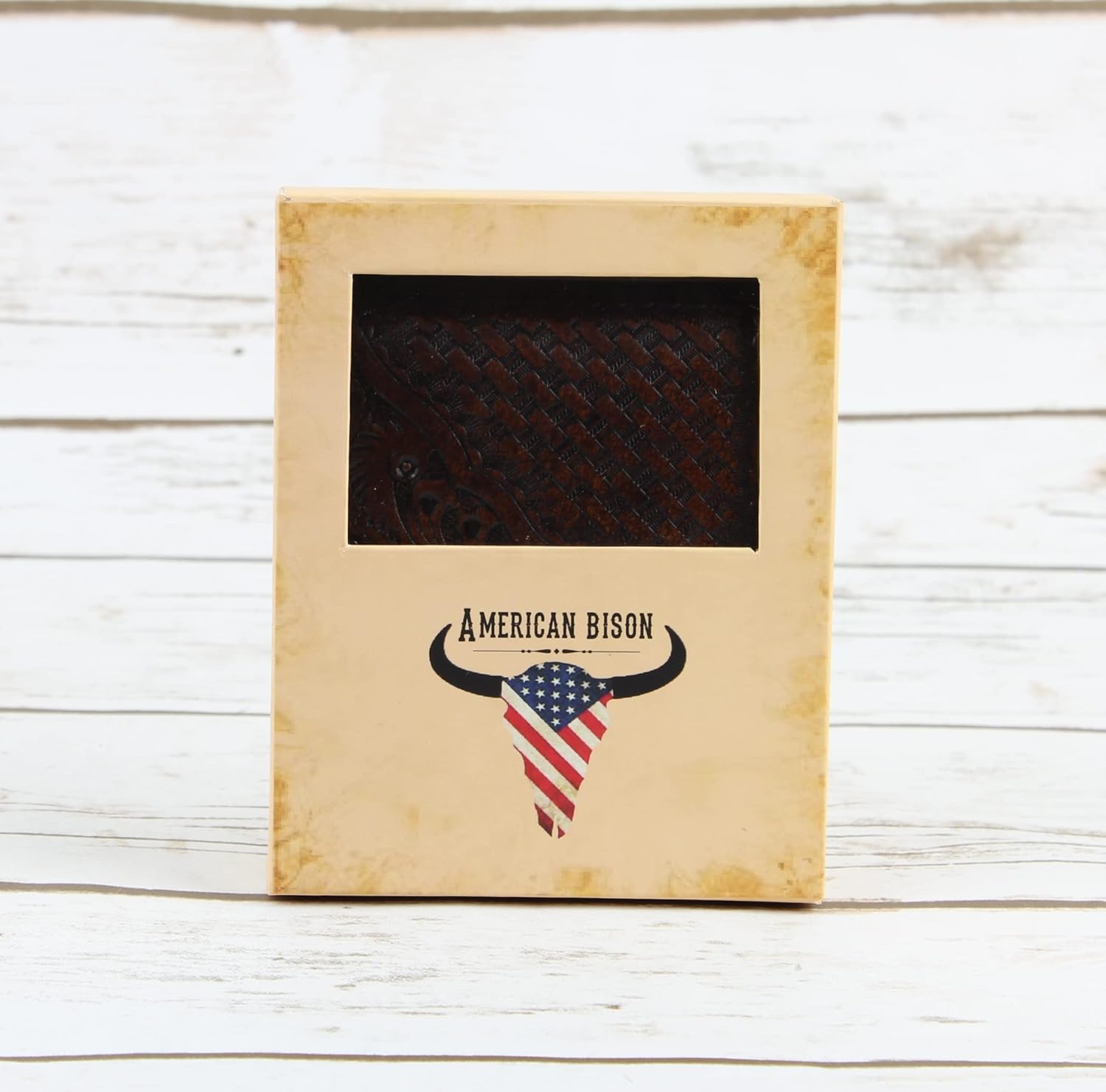 Upgrade your everyday carry with the American Bison RFID Safe Cowhide Tooled Leather Bifold Wallet. Made from premium genuine cowhide leather, this wallet showcases an intricate tooled floral design in a rich dark brown, combining rugged durability with timeless style. The wallet is equipped with RFID-blocking technology, providing an added layer of security by protecting your personal information from electronic theft. Designed for practicality, it includes a center ID flap, credit card slots, and a money clip, allowing you to carry your essentials—cards and cash—in a compact and organized manner. Its slim profile ensures it fits easily in your pocket without adding bulk, making it ideal for daily use. Additionally, the wallet comes in a stylish gift box, making it the perfect gift for birthdays, anniversaries, or holidays. With its blend of craftsmanship, security, and functionality, the American Bison RFID Bifold Wallet is the perfect choice for the modern man.