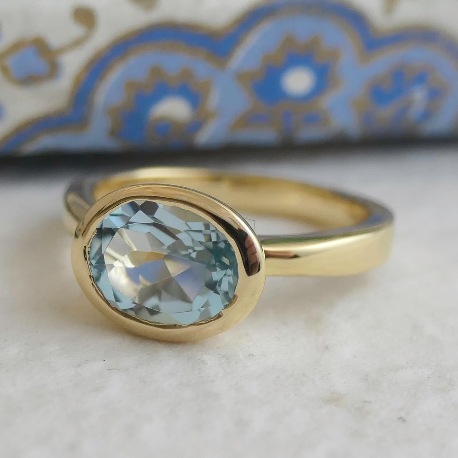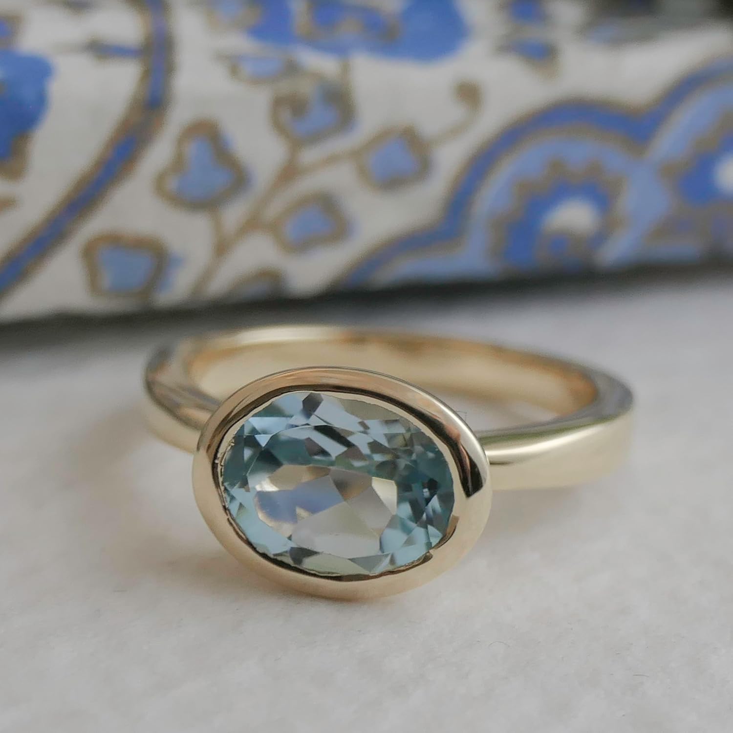 Blue Topaz Oval Cut 925 Gold Plated Sterling Silver Ring – Handmade Natural Gemstone Jewelry Gift Ideas for Women – Birthstone Birthday Valentine’s Mother’s Day Gift – Blue Gem Ring