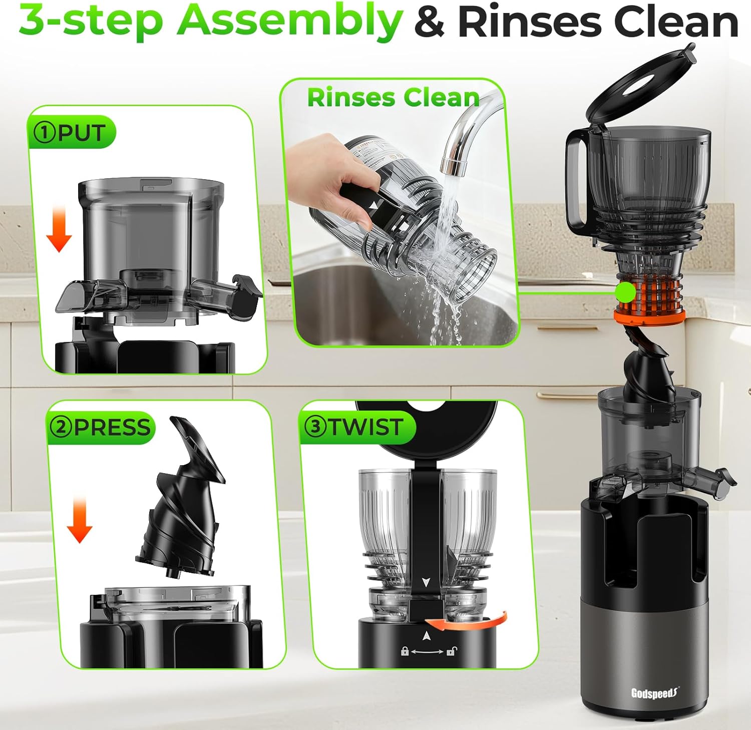 High Juice Yield: A torque-packed auger crushes produce at slow RPMs, squeezing up to 99% juice while protecting vitamins.