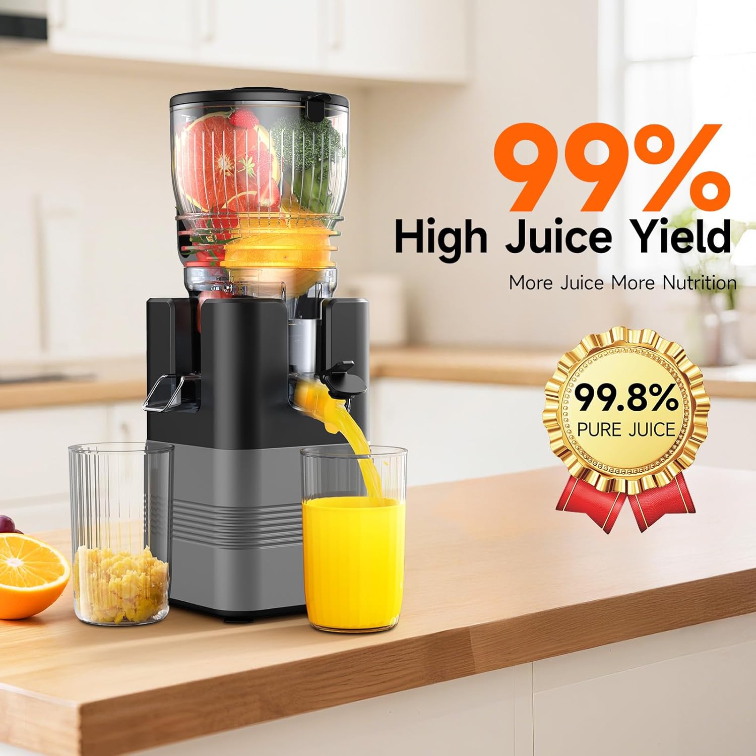 2025 Nutrient-Preserving Cold Press Technology: This cold press juicer uses low-speed cold press juicing and is equipped with a spacious 5.8-inch wide feed chute. This thoughtful design ensures that oxidation is kept to a minimum during the juicing process. You can effortlessly juice whole fruits and vegetables without going through the trouble of pre-cutting. This cutting-edge technology in cold press juicer machines guarantees maximum nutrient retention, enabling you to enjoy healthier and more nutritious juices with every use.