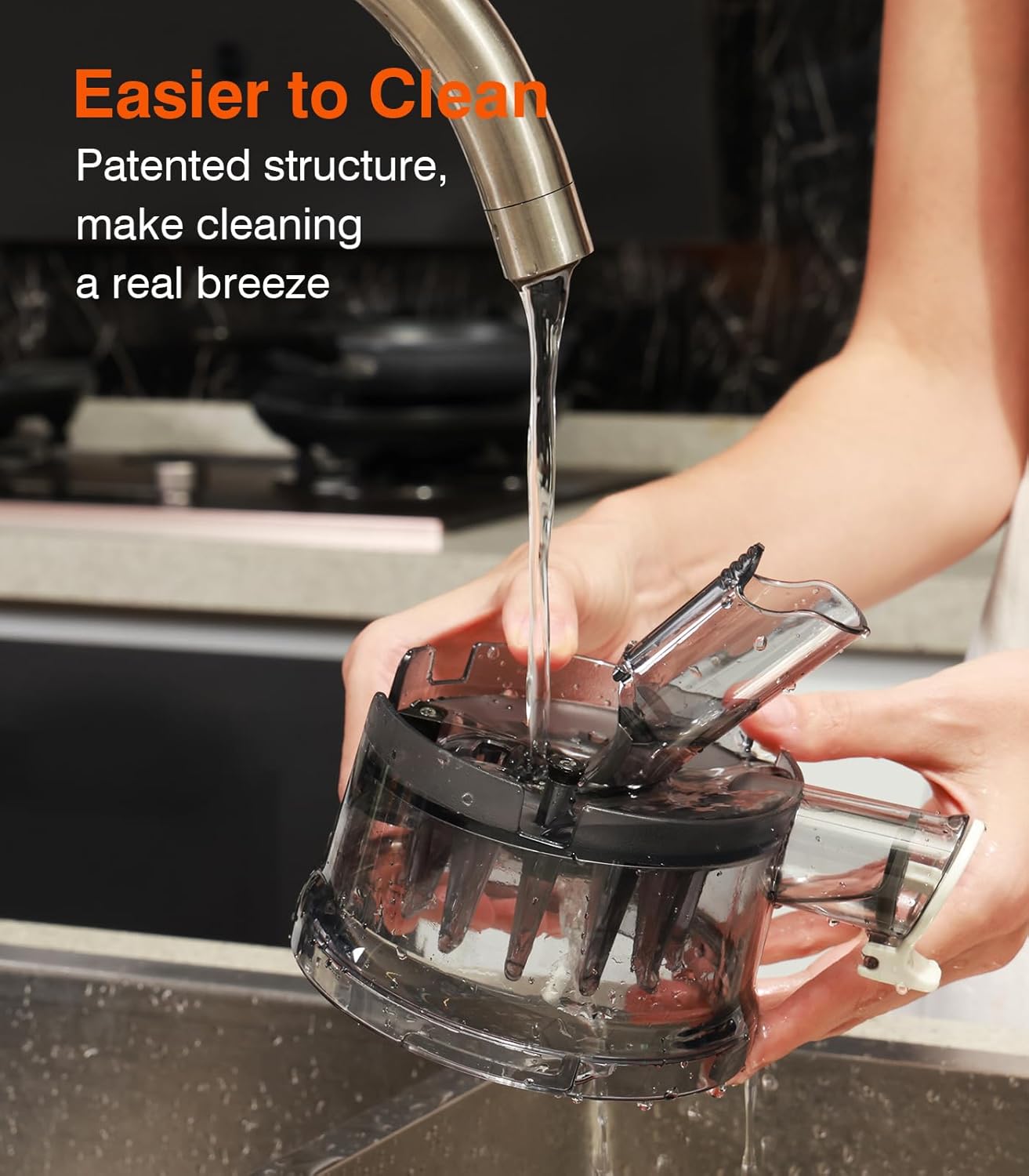 【User Friendly Installation & Cleaning】All parts detach in <10 seconds and are dishwasher-safe(<70℉). Both the juicing bowl and the filter adopt streamlined structure, reduces clogging and buildup. The openable design at the bottom of the slag outlet allowing for quick and effortless rinsing.