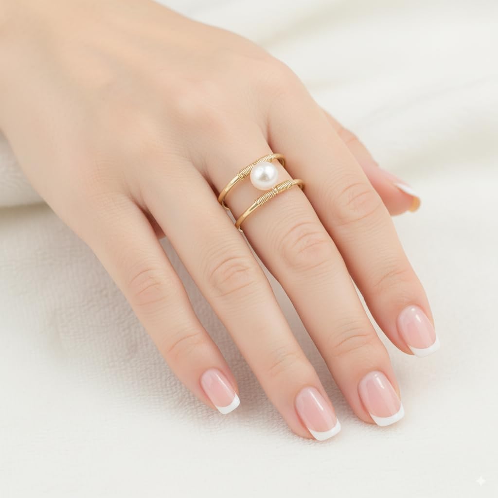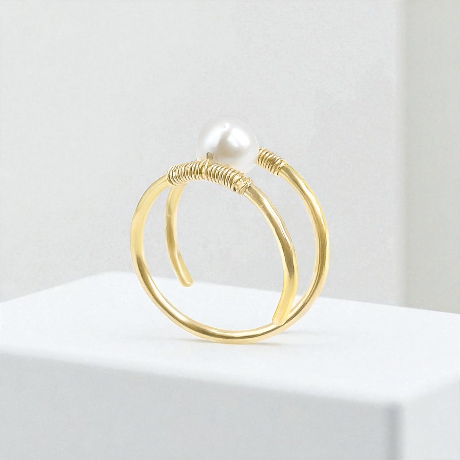 Modern yet classy, trendy yet timeless…this ring is so gorgeous on the finger! Choose either a white freshwater pearl or a genuine turquoise bead; also pick your ring size for a custom fit. These rings are handcrafted from one length of gold filled wire and then hammered for texture. Your ring will have a double-band look with the pearl/turquoise wire wrapped between the two layers, as if the bead is floating. So pretty and unique! Your ring will be packaged in a beautiful gift box ready for gift giving.