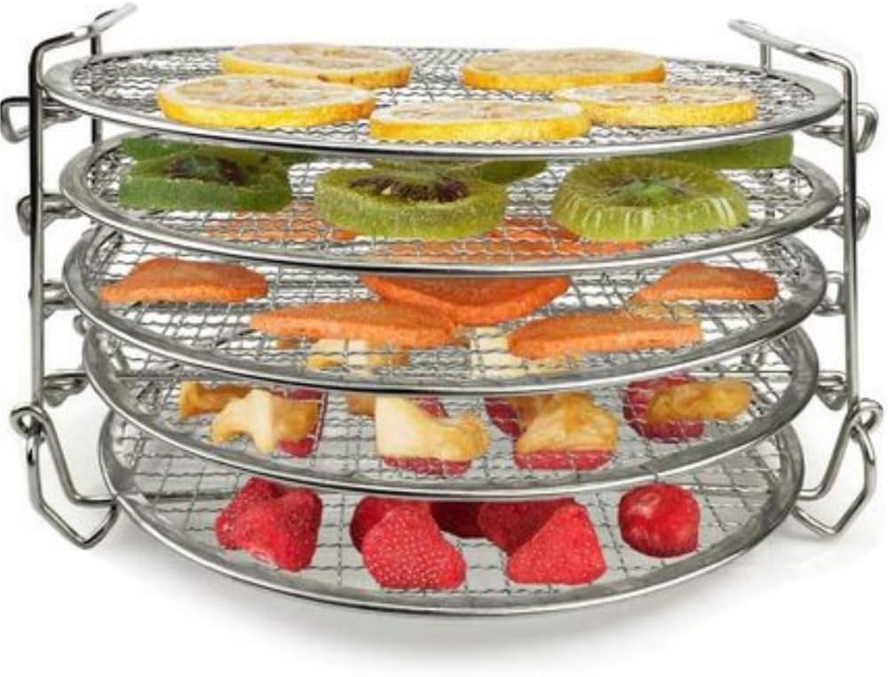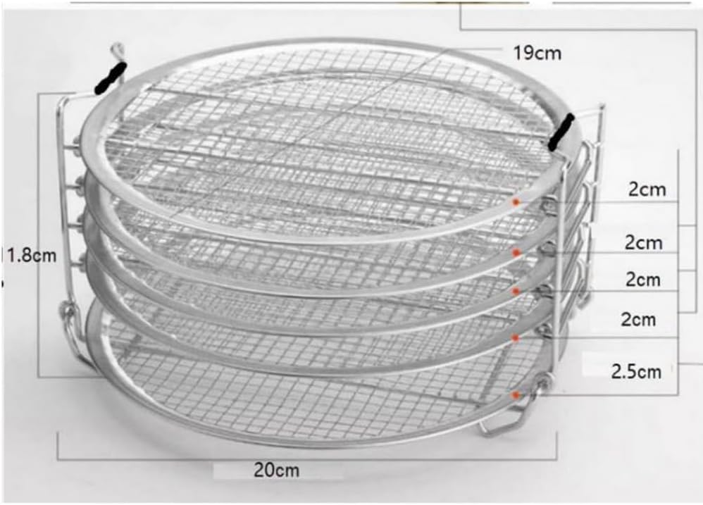 Efficient Design: With a diameter of 8.22 inches and height of 6.29 inches, this dehydrator rack provides ample space to dry out fruits and meats with greater efficiency